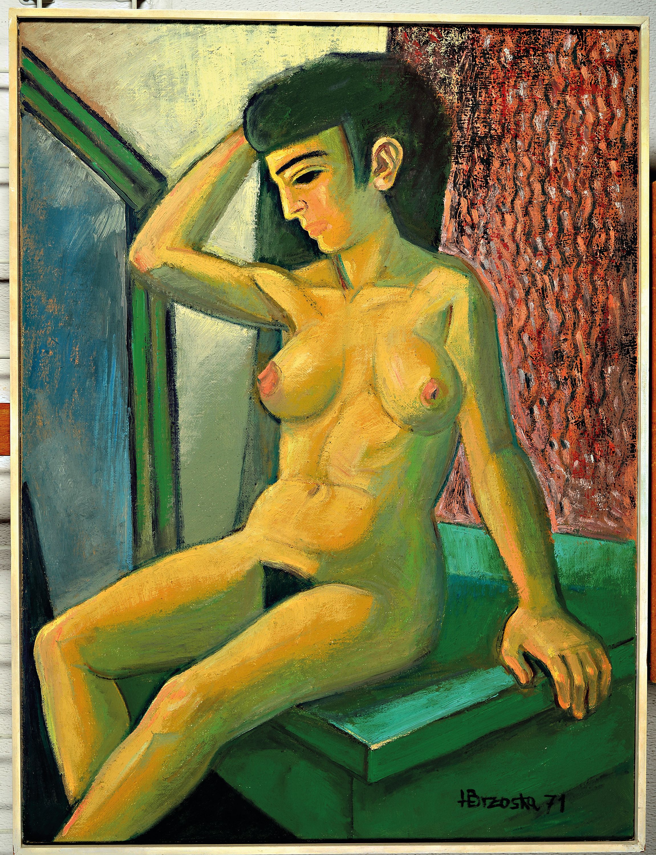 Heinz Brzoska, 1942 Kattowitz-2015 Ludwigshafen, sitzender weiblicher Akt, rechts unten signiert und datiert 1971, Öl/Lwd, Leistenrahmen 82x62 cm