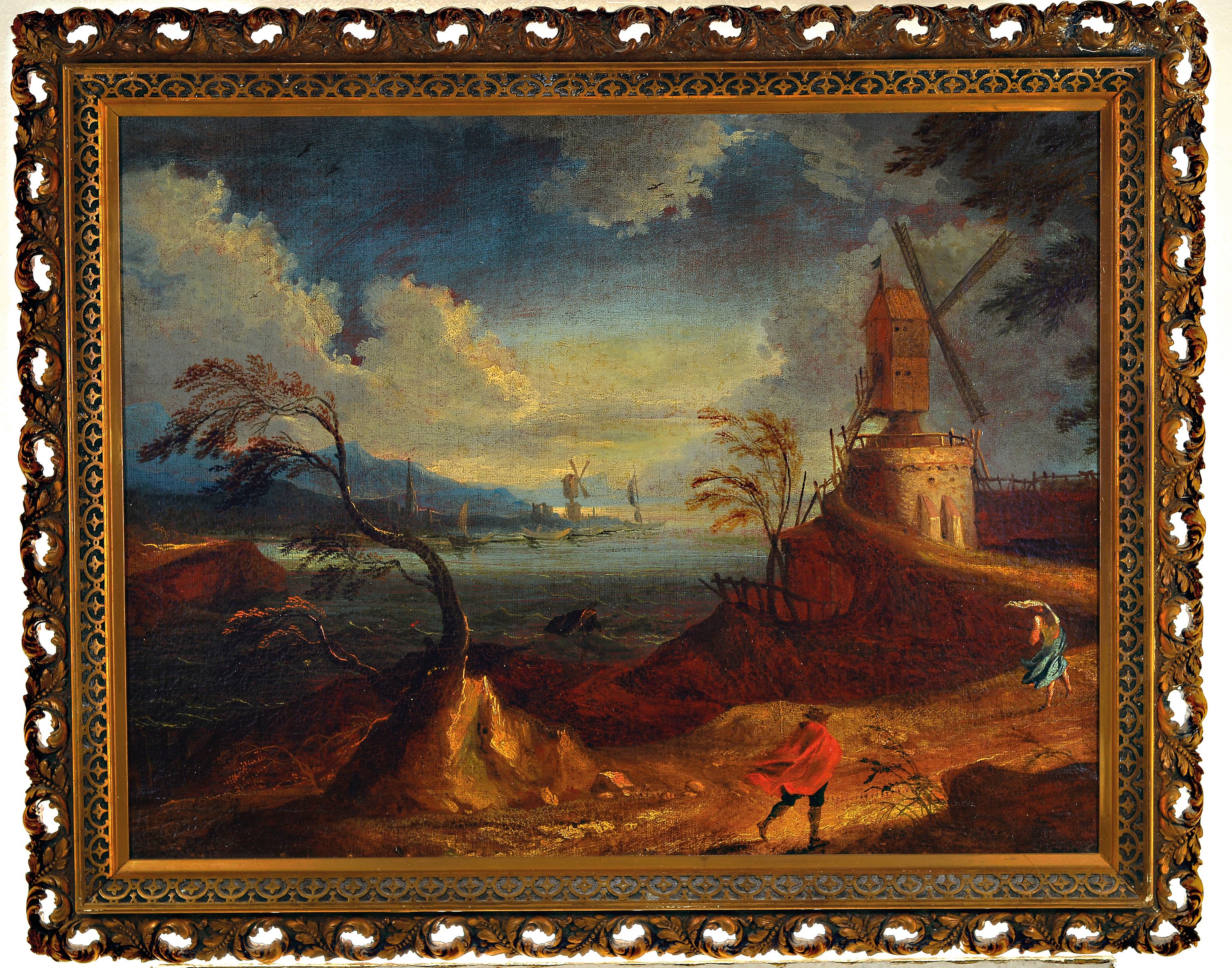 Niederländischer Künstler des 18.Jh., niederländische Küstenlandschaft mit Windmühlen