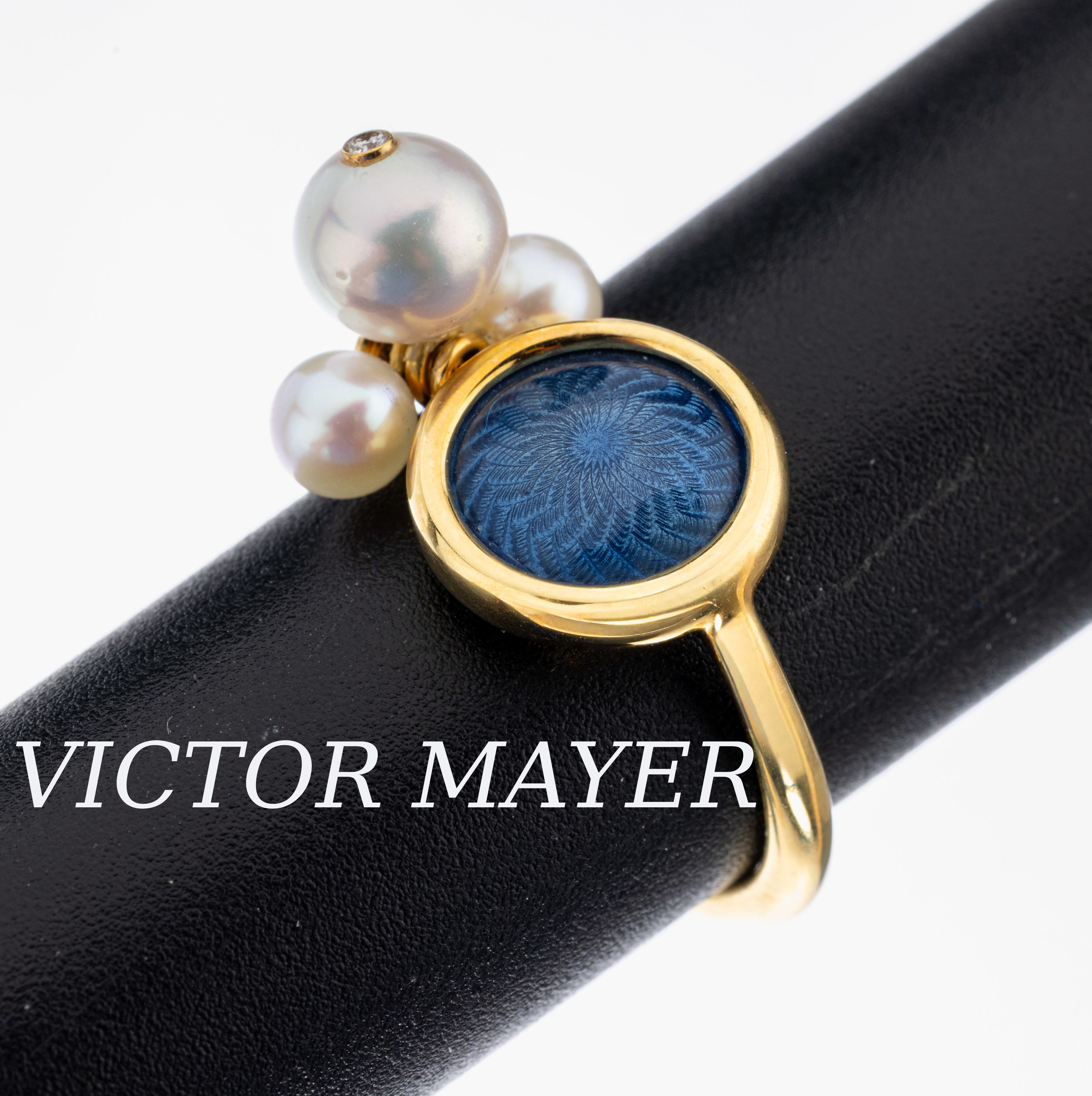 18 kt Gold VICTOR MAYER Perl-Ring, GG 750/000, limitierte Edition 12/500, Grund guillochiert