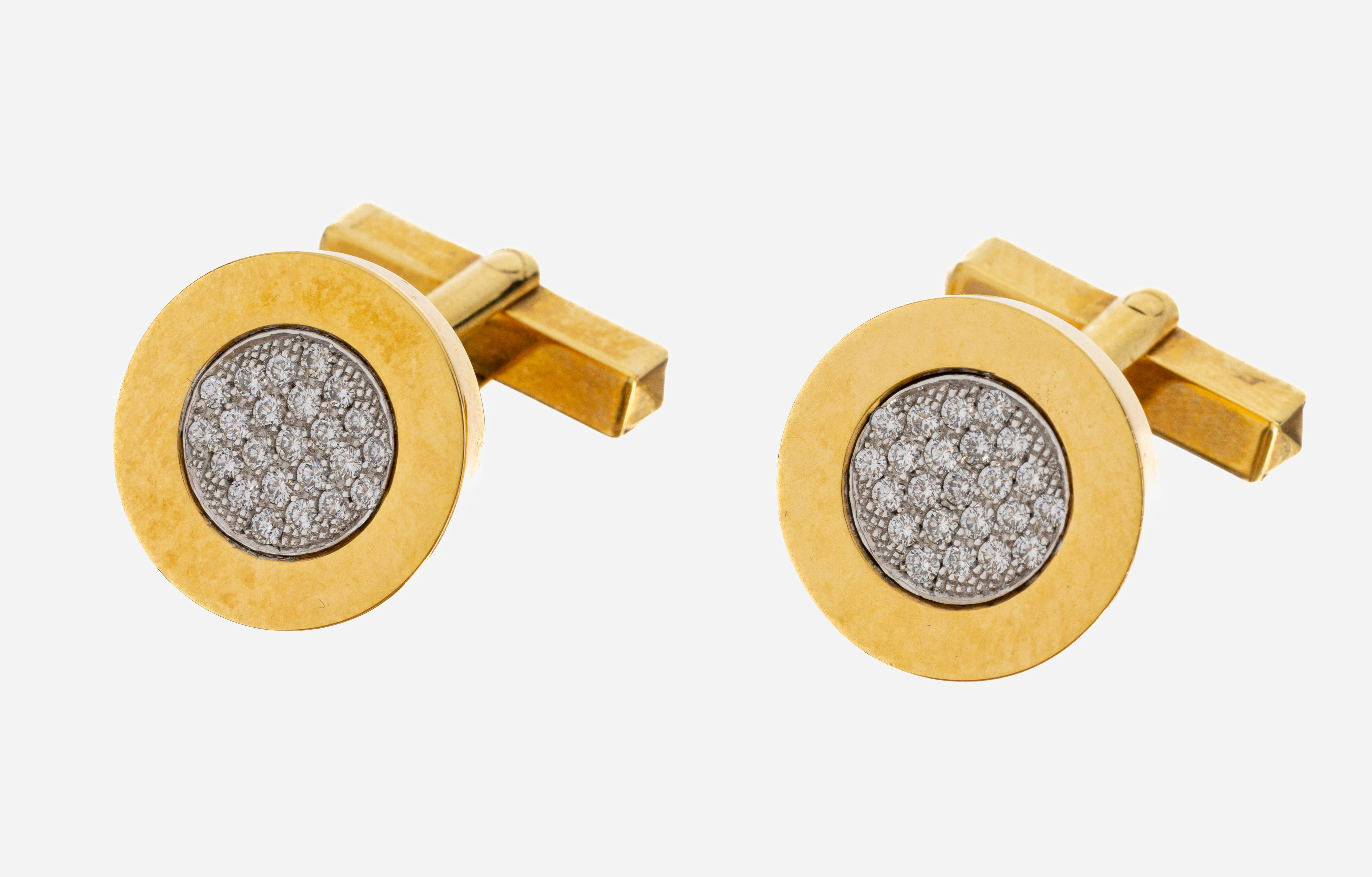 Paar 18 kt Gold Brillant-Manschettenknöpfe, GG/WG 750/000, schlicht, rund, 46 in