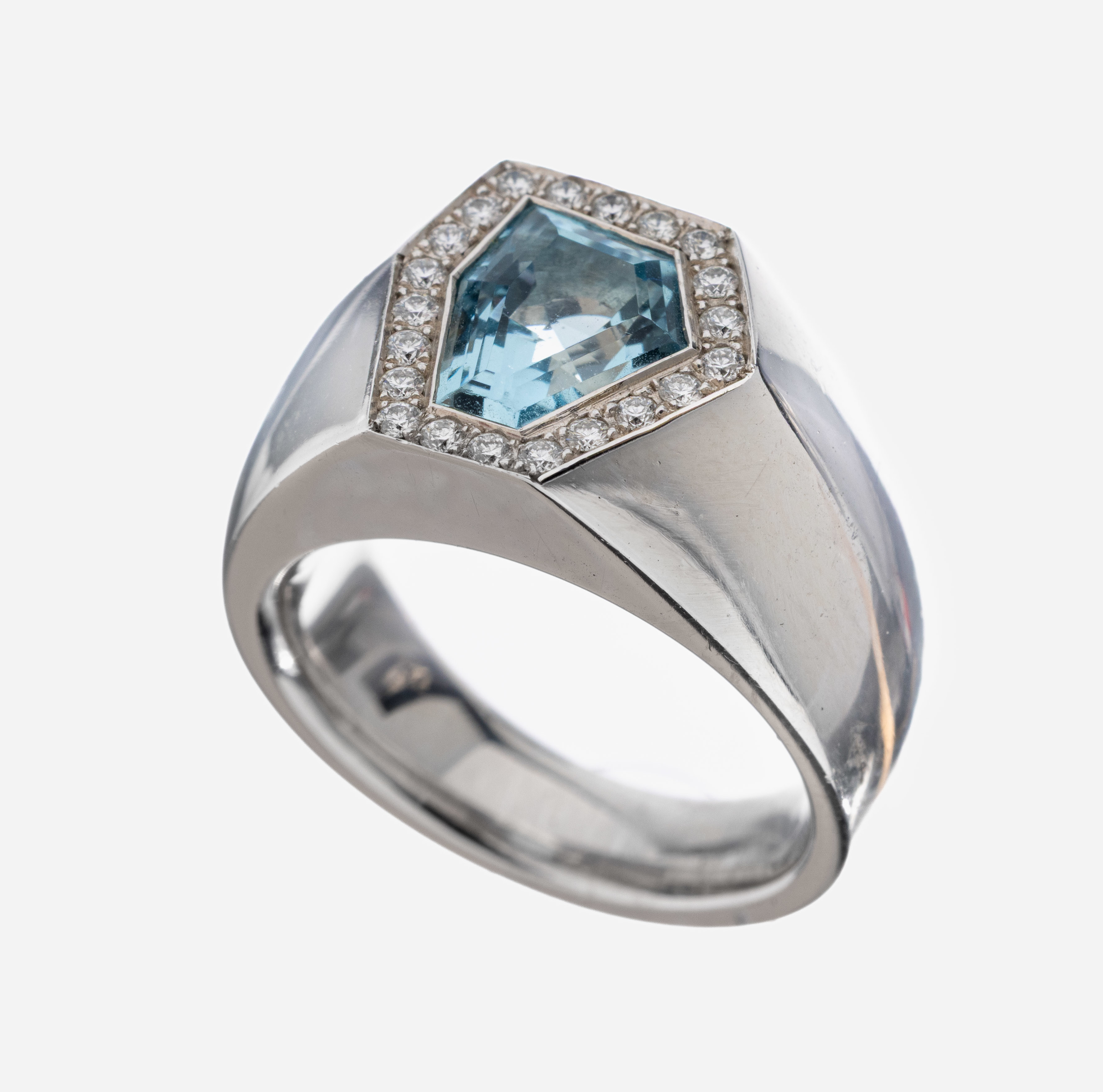 18 kt Gold Aquamarin-Brillant-Ring, WG 750/000, qualitätvolle Verarbeitung, Aquamarinim