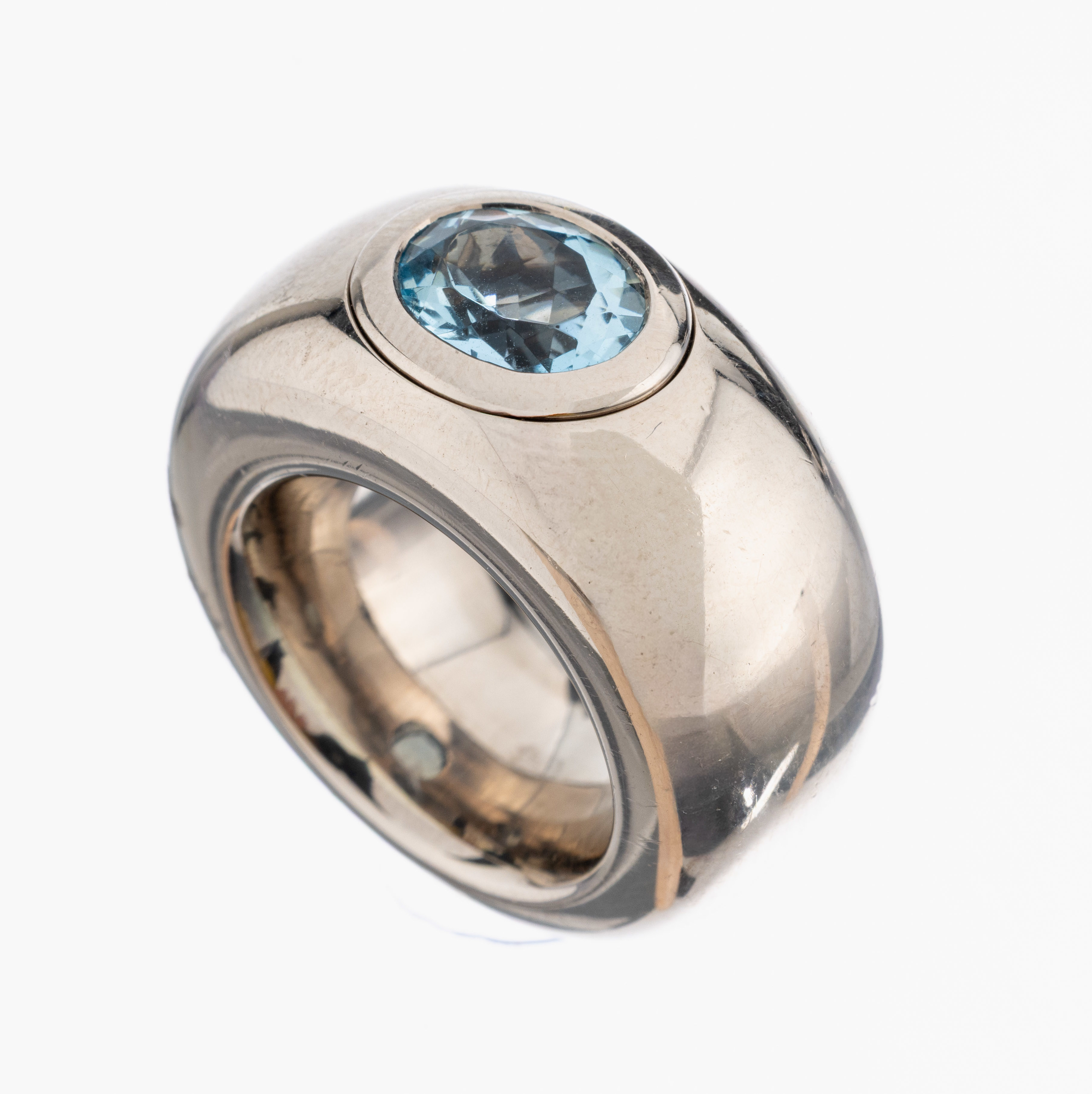 Massiver 14 kt Gold Aquamarin-Ring, WG 585/000 gepr., ovalfacett. Aquamarin ca. 2.4