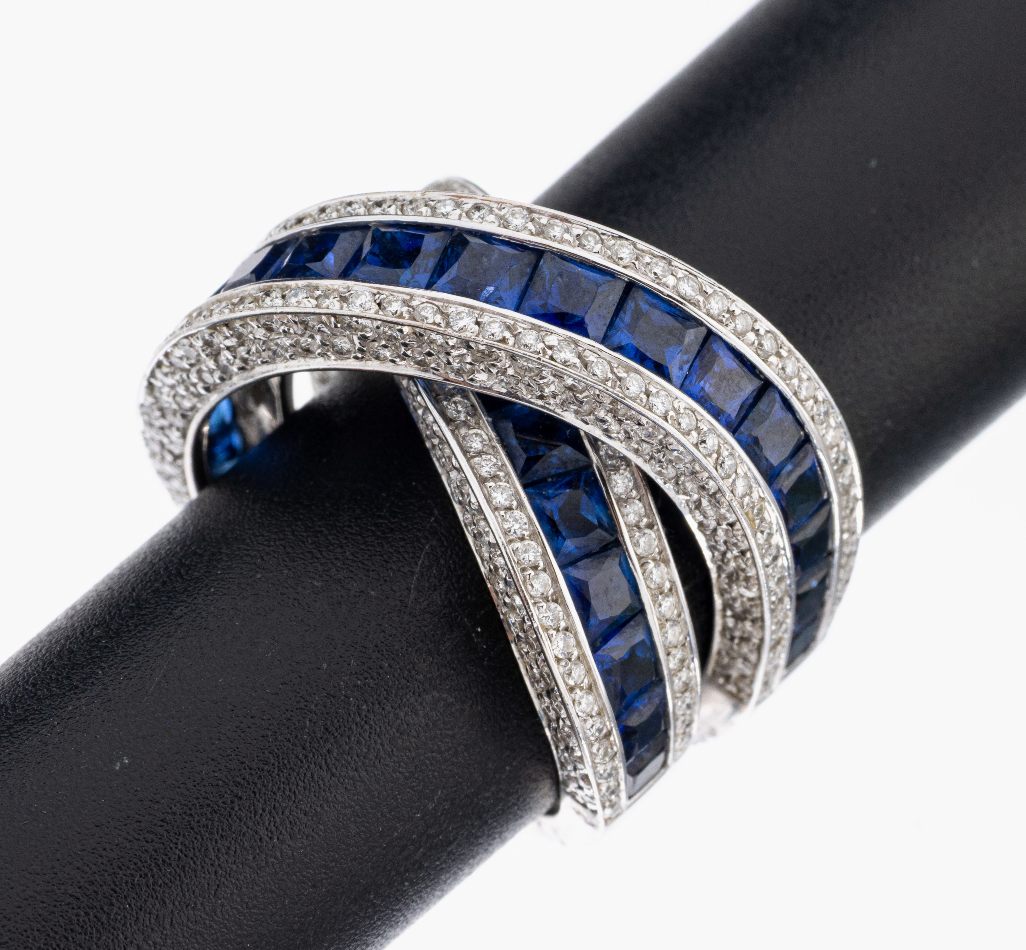 18 kt Gold Saphir-Brillant-Ring, WG 750/000, facett. Saphir-Carrees zus. ca. 6.00