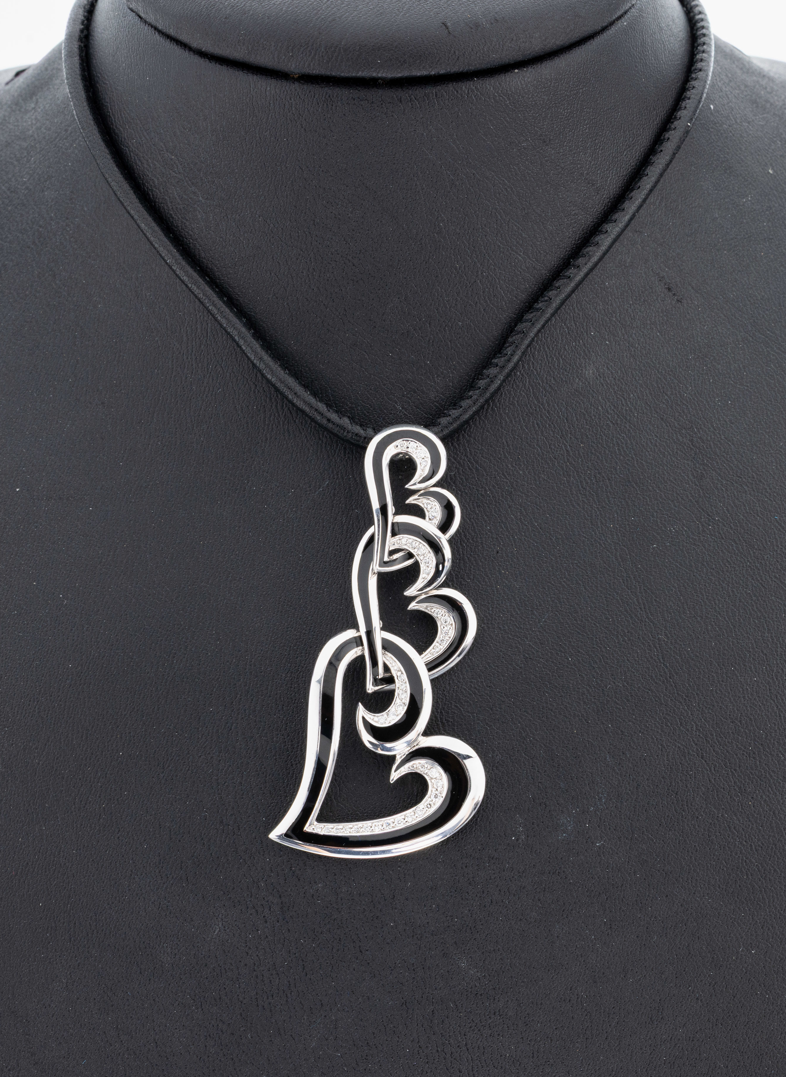 18 kt Gold Brillant-Email-Collier, WG 750/000, 3 ineinander hängende Herze, schwarz