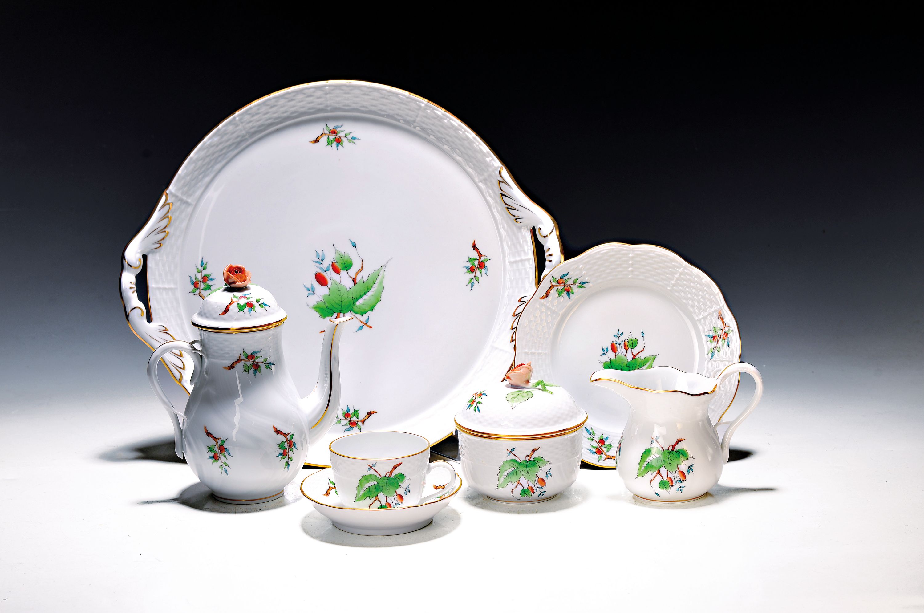 Mokkaservice, Herend, für 6 Personen, Porzellan, Mokkakännchen, sechs Mokkatassen