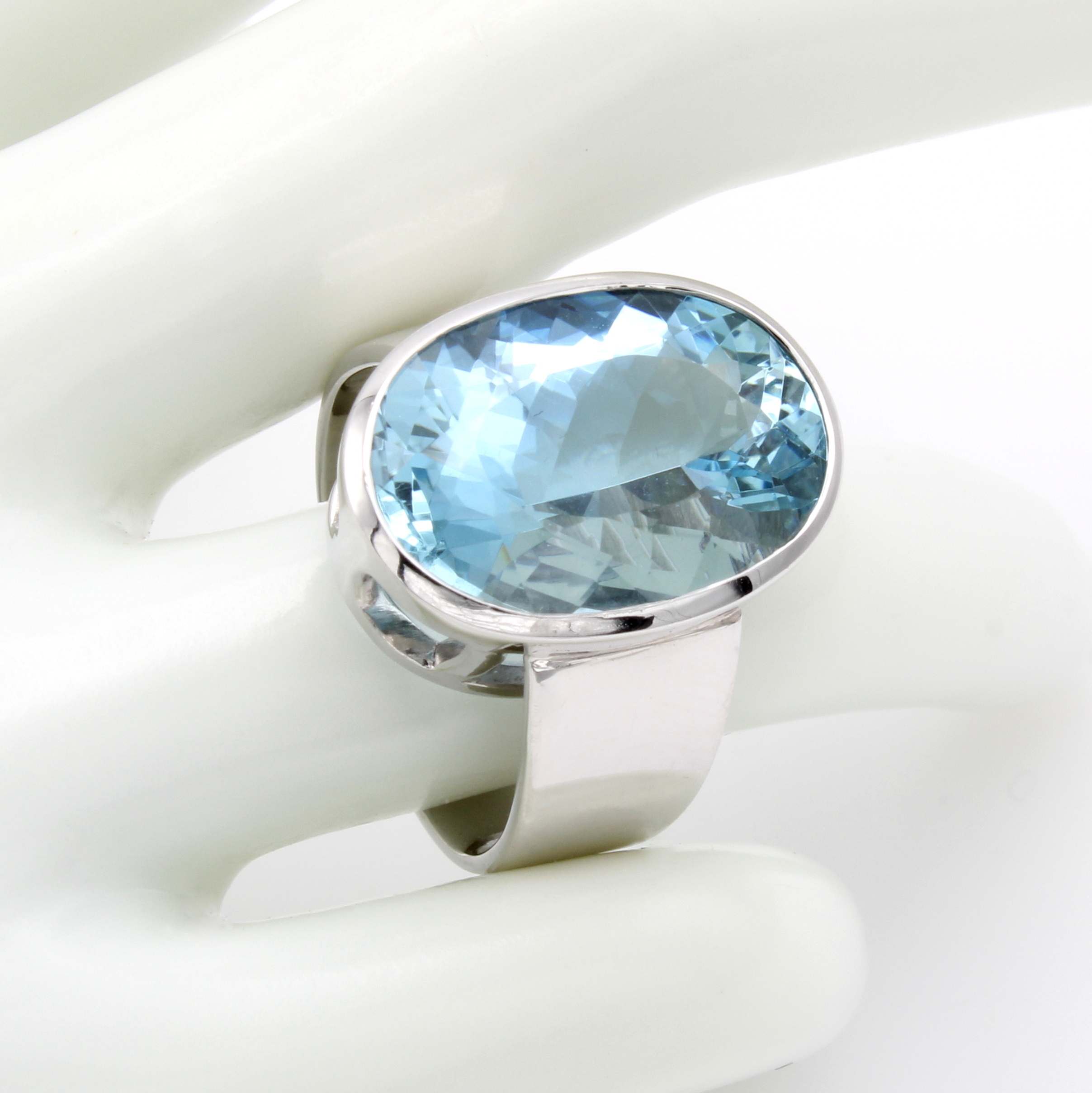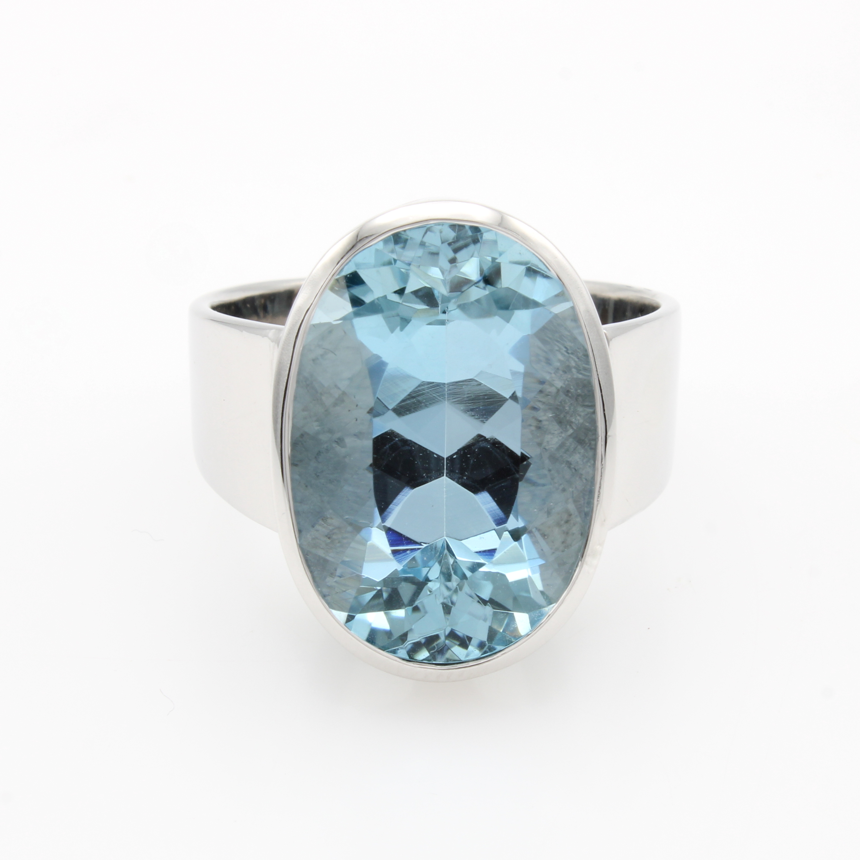 Ring mit Aquamarin, WG 750/000, ovaler Aquamarin v. guter Farbe im Schachbrettschliffca. 14.8 ct, RW ca. 58 Schätzpreis: 14800, - EUR
