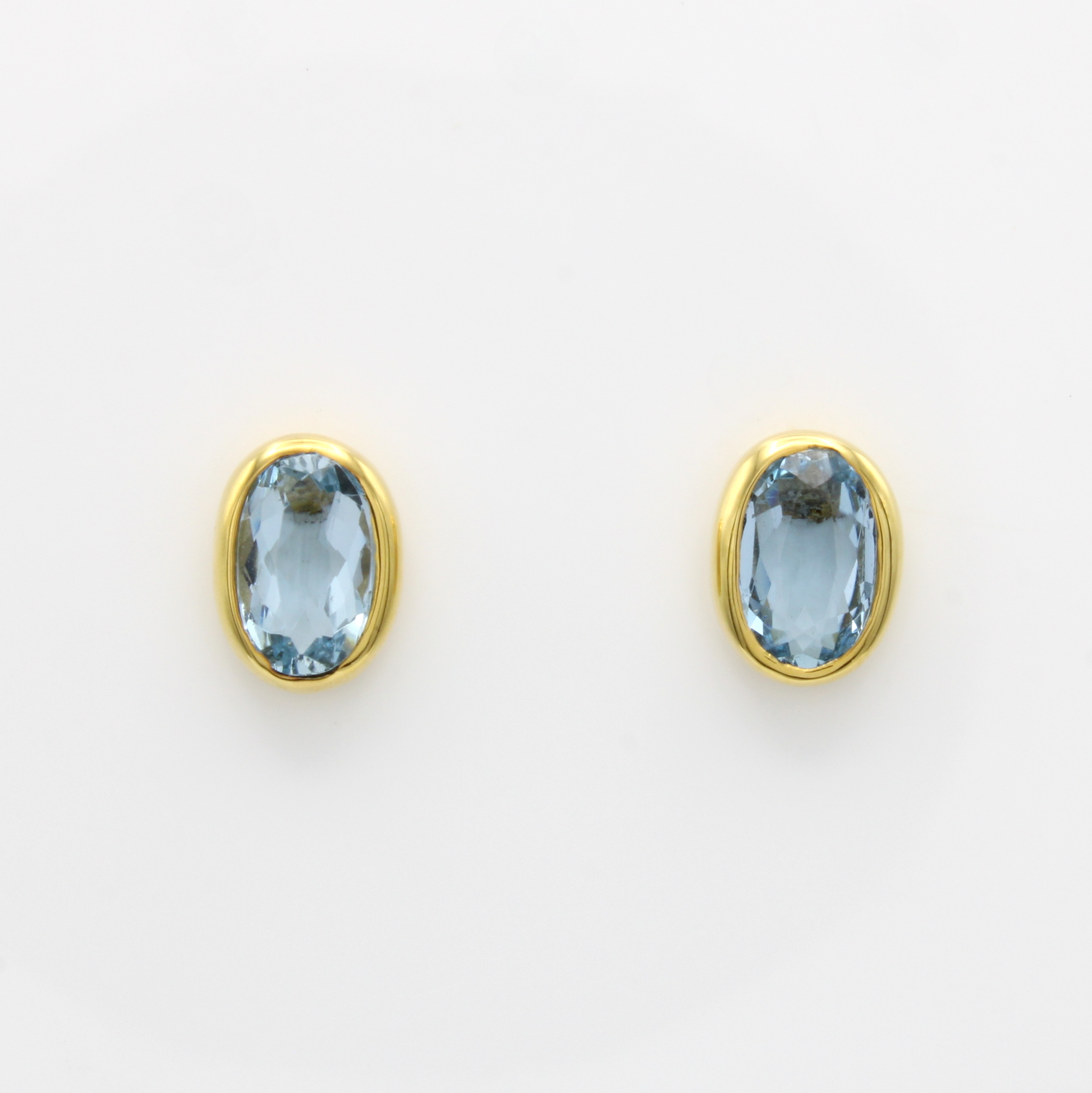 Paar Ohrstecker mit Aquamarinen, GG 585/000,2 ovale, fac. Aquamarine in glatter Fassung zus. ca. 2 ct Schätzpreis: 1500, - EUR