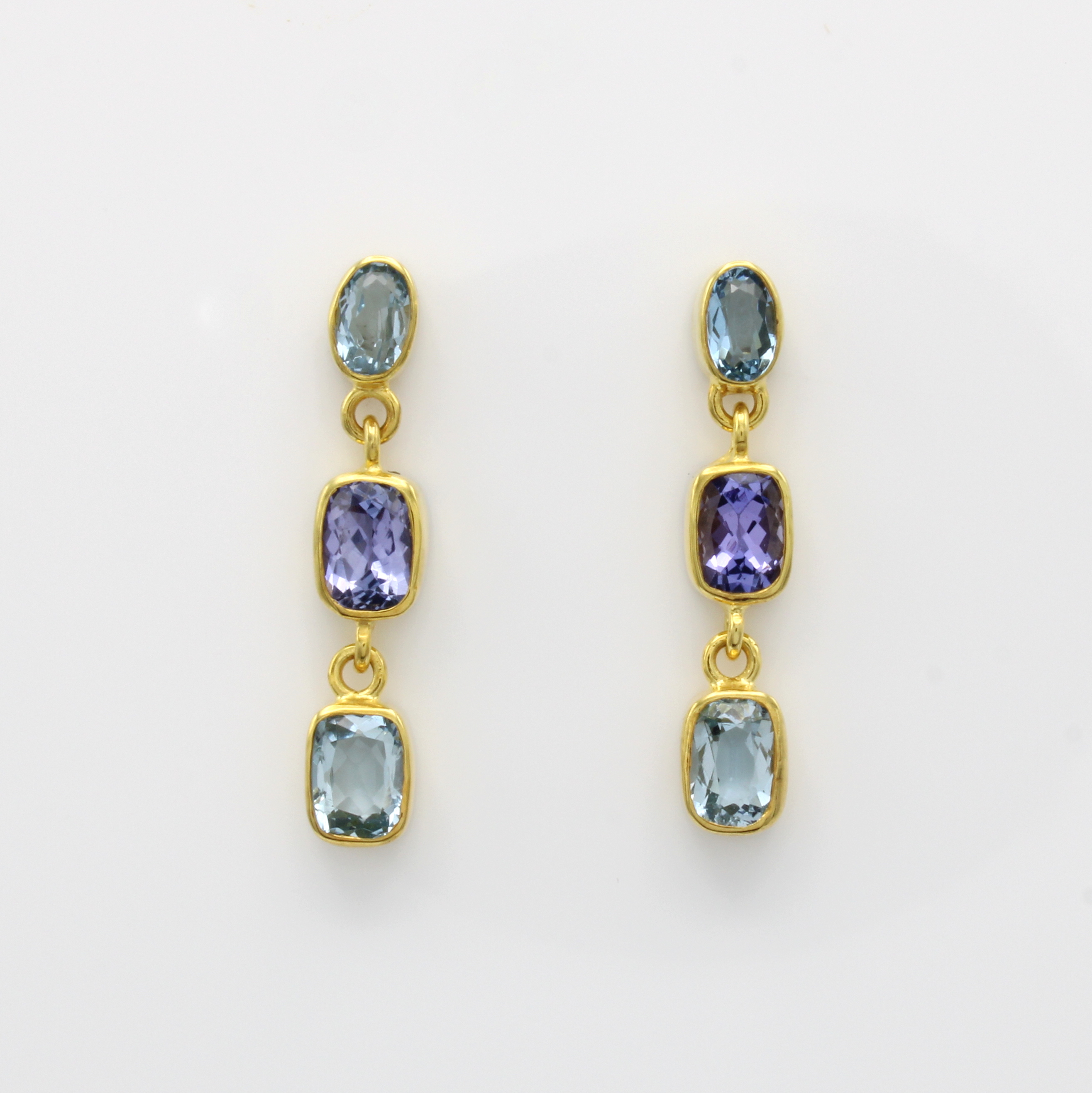 Paar Ohrstecker mit Farbsteinen, GG 585/000,bewegl. Abhängungen, fac. Tansanite zus. ca. 1.8 ct, fac. Aquamarine zus. ca. 2.5 ct Schätzpreis: 2300, - EUR