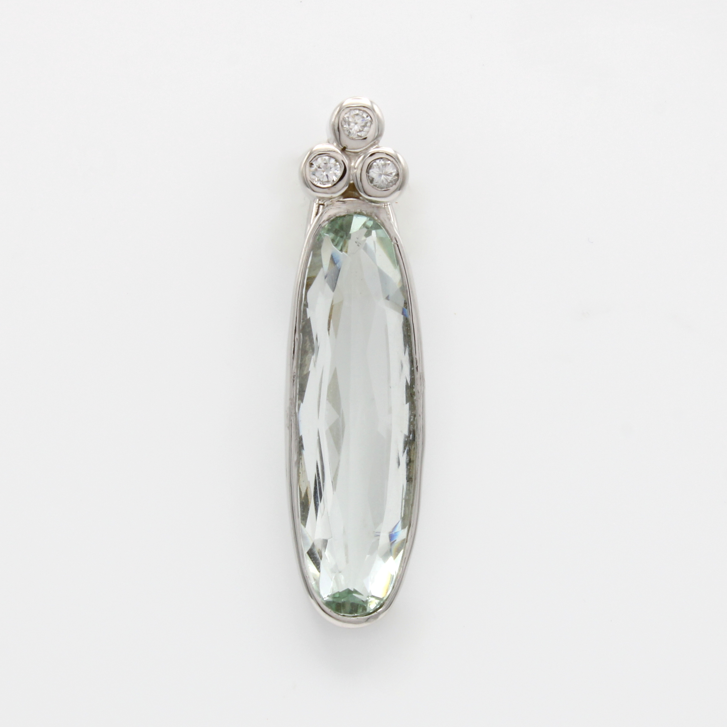 Anhänger mit Aquamarin und Brillanten, WG 585/000, ovaler, fac. Aquamarin ca. 5.2 ct, 3 Brill. zus. ca. 0.09 ct Weiß/p