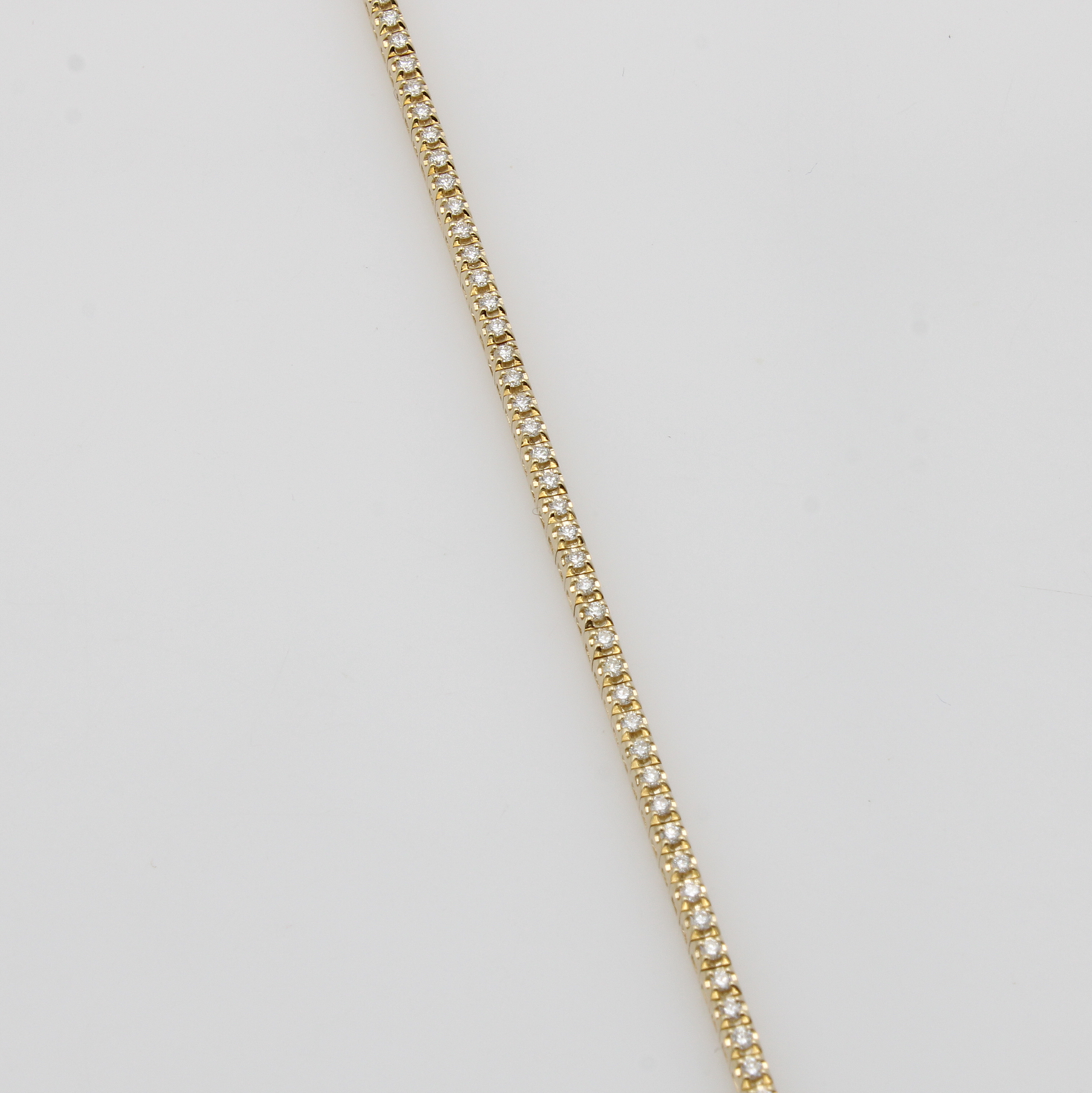 Rivierarmband mit Brillanten, GG 585/000, Brill. zus. ca. 1.00 ct Weiß/lupenr., Kasten- schl. m. Sicherheitsacht, L. ca. 18 cm Schätzpreis: 4400, - EUR