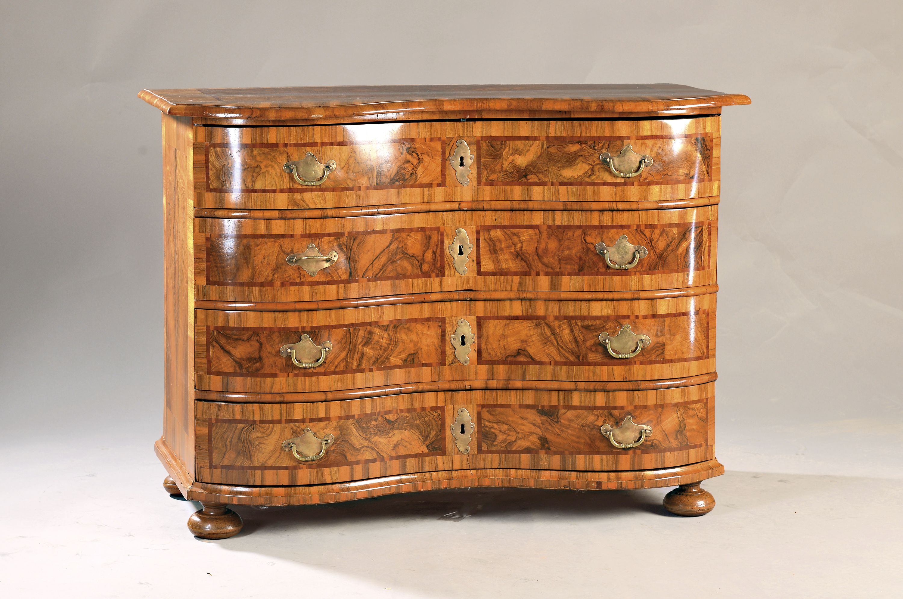 Barockkommode, wohl Frankfurt/Main,, um 1750, doppelt geschweift, vier Schubladen,