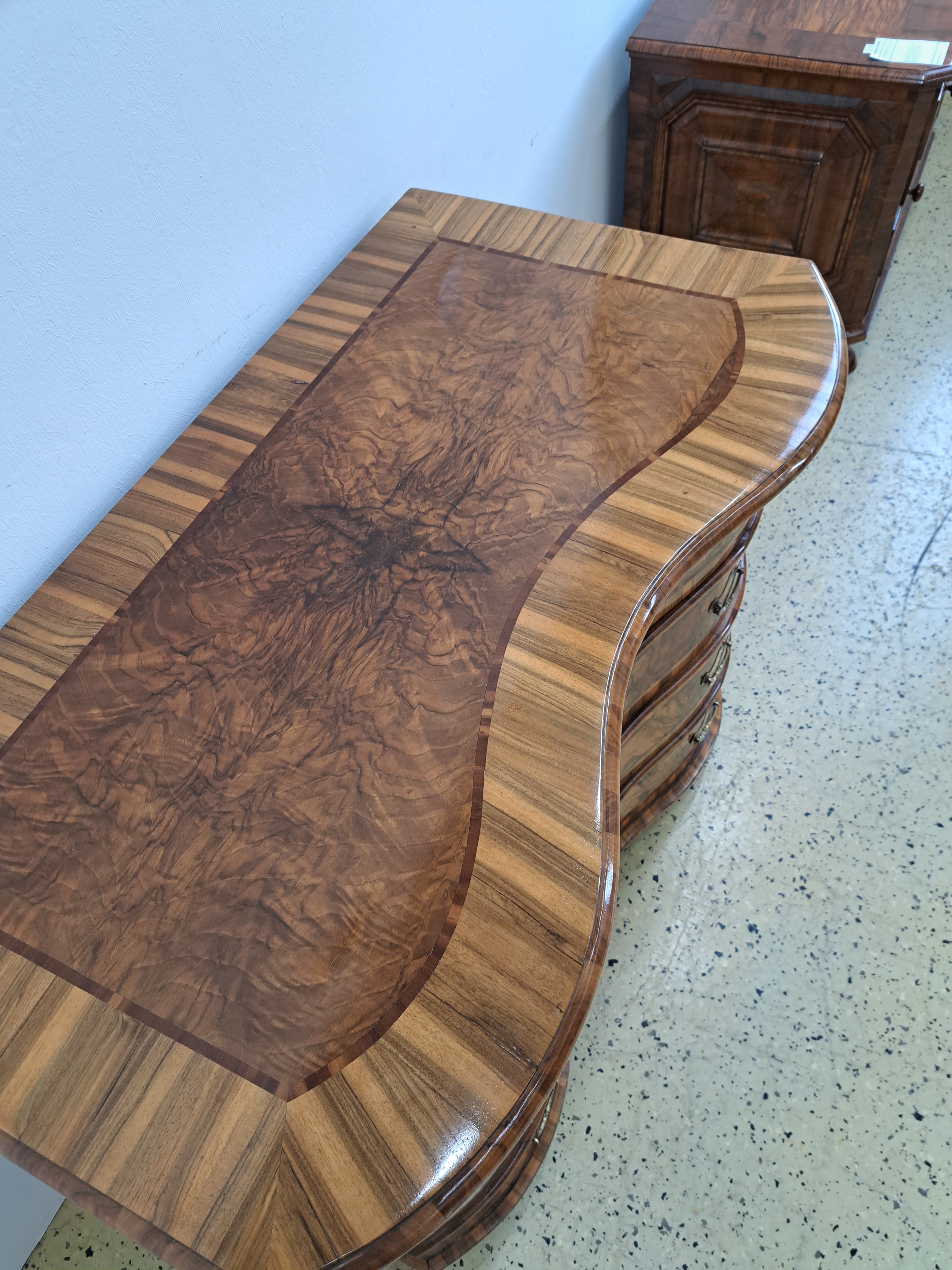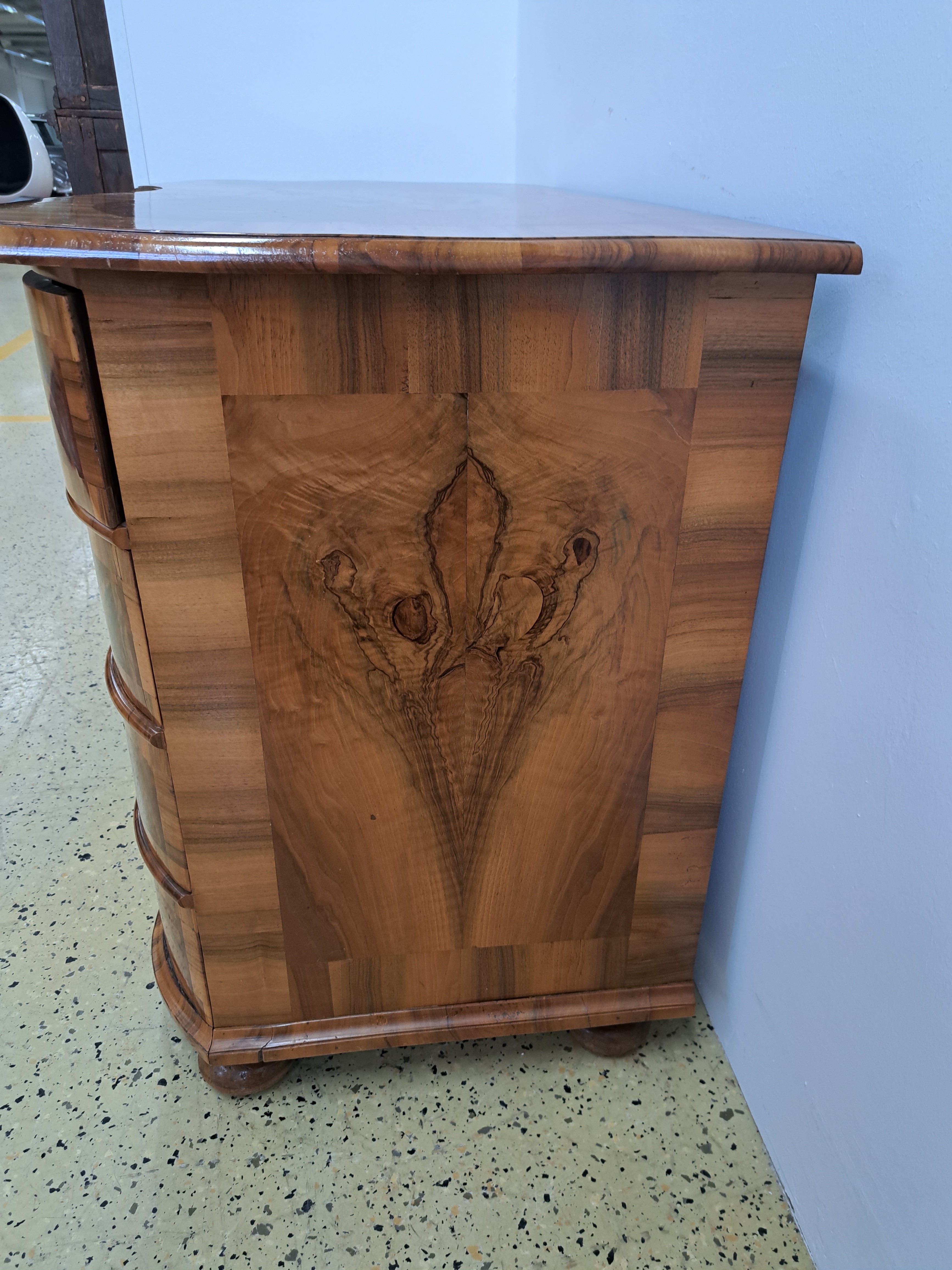 Nussbaumfurnier und Wurzelfurnier, orig. Messingbeschläge, Schellack handpoliert,