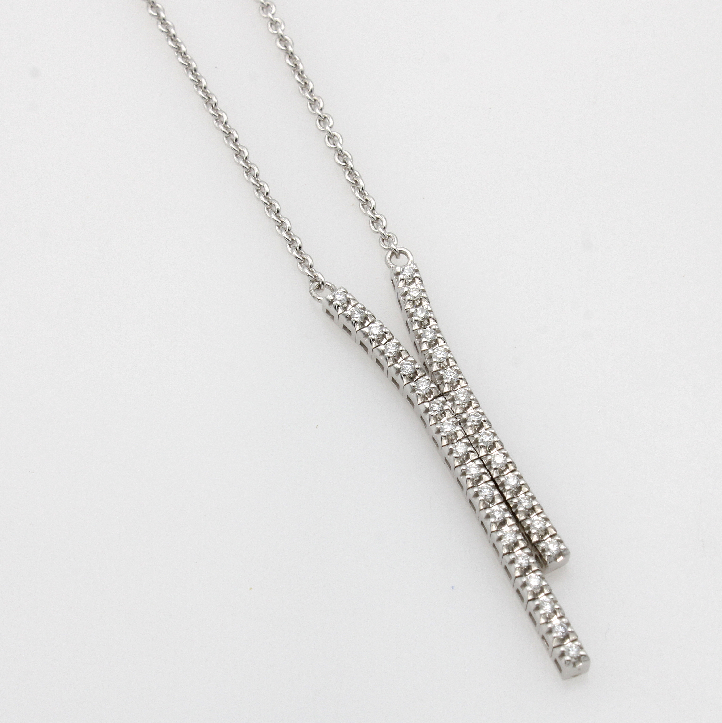 Collier mit Brillanten, WG 585/000, Brill. zus. ca. 0.20 ct Weiß/si, bewegl. gearbeitet, L. ohne Abhängung ca. 40 u. 44 cm Schätzpreis: 2000, - EUR