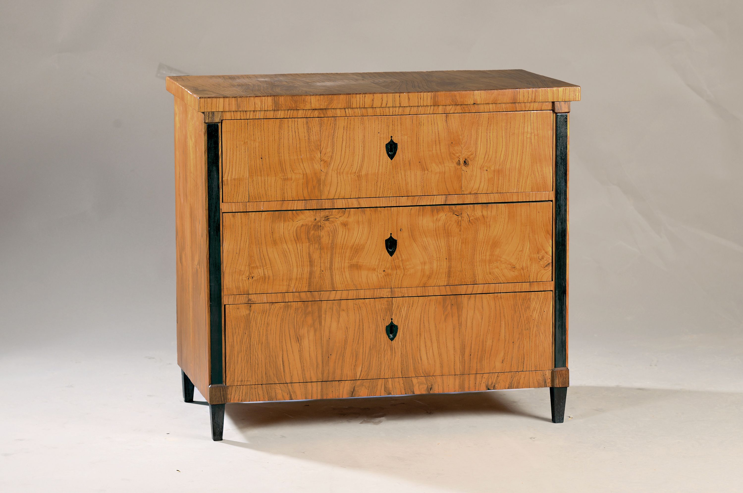 Kleine Biedermeier Kommode, deutsch, um 1830, Rüsterfurnier, 3 Schubladen, ebonisiert,