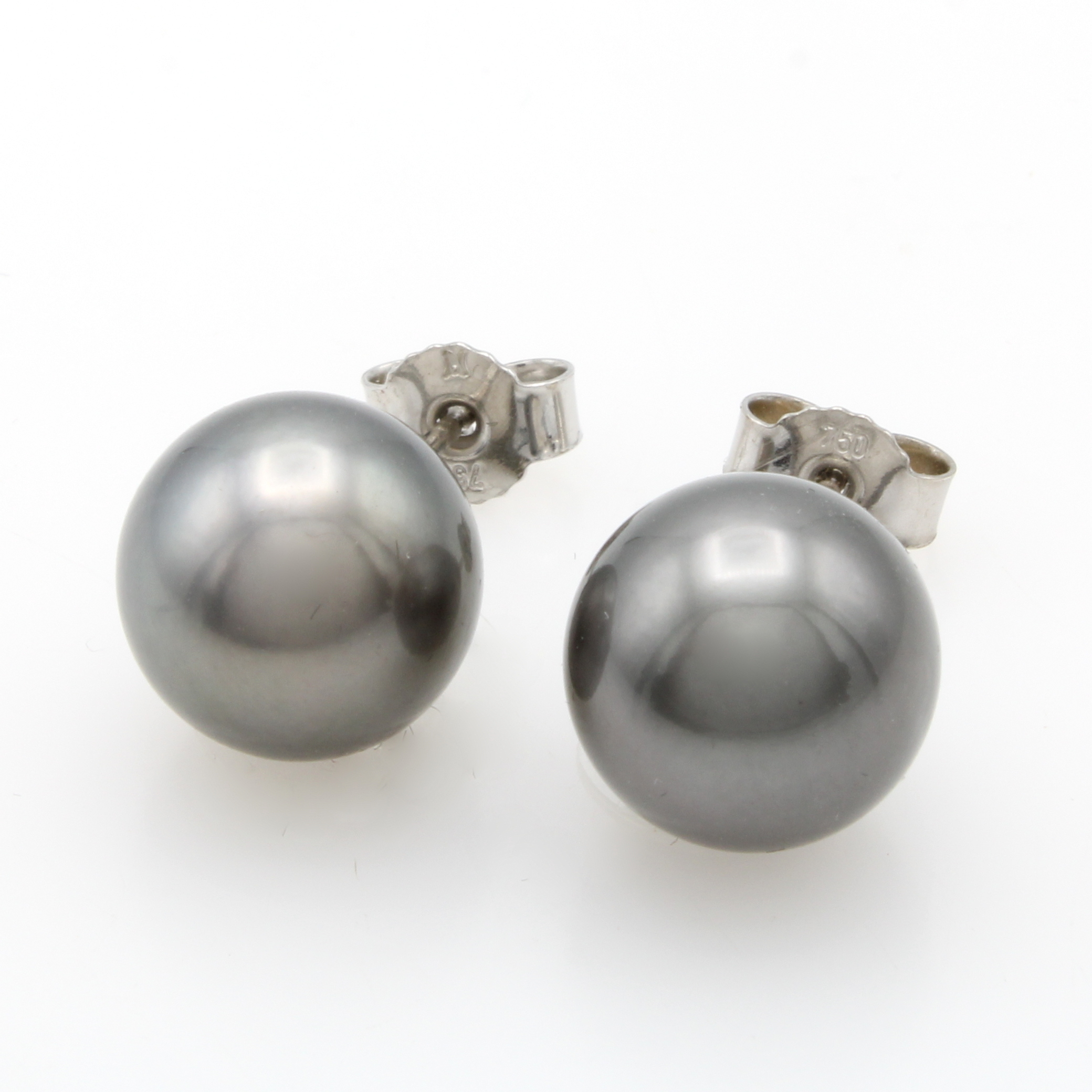 Paar Ohrstecker mit Tahitizuchtperlen, WG 750/000, anthrazitfarb. Perlen, D. ca. 10-11 mm Schätzpreis: 890, - EUR