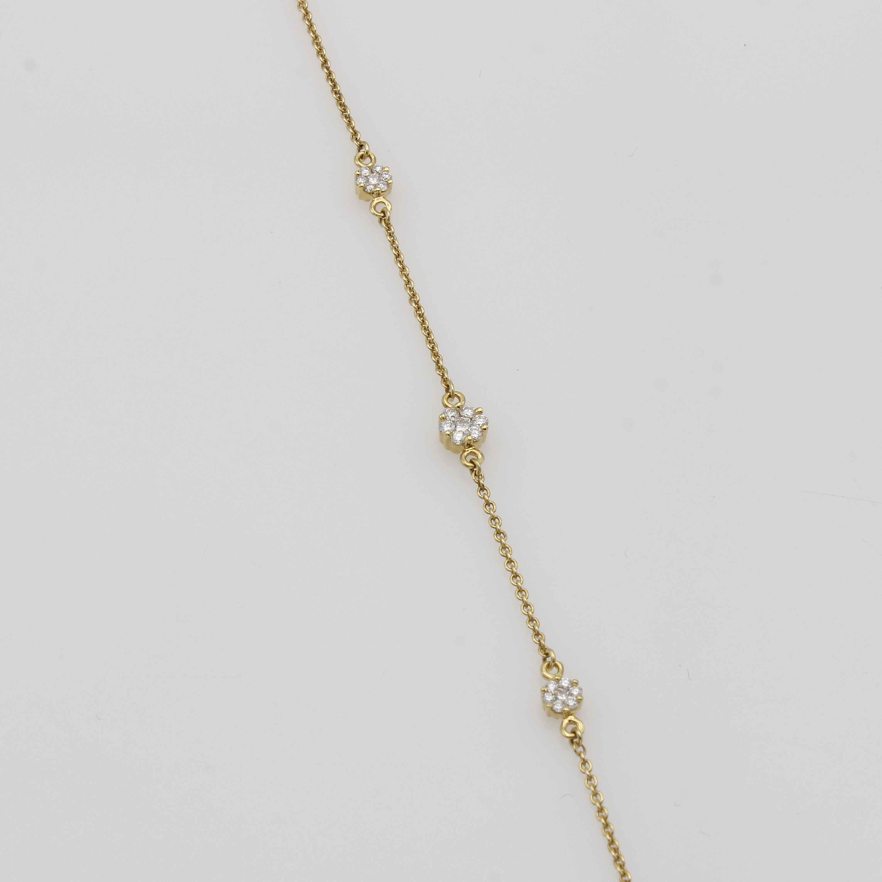 Armband mit Brillanten, GG 585/000, 3 blütenförm. Zwischenteile bes. mit Brill. zus. ca. 0.20 ct Weiß/si, L. ca. 19 bis 23 cm Schätzpreis: 1100, - EUR