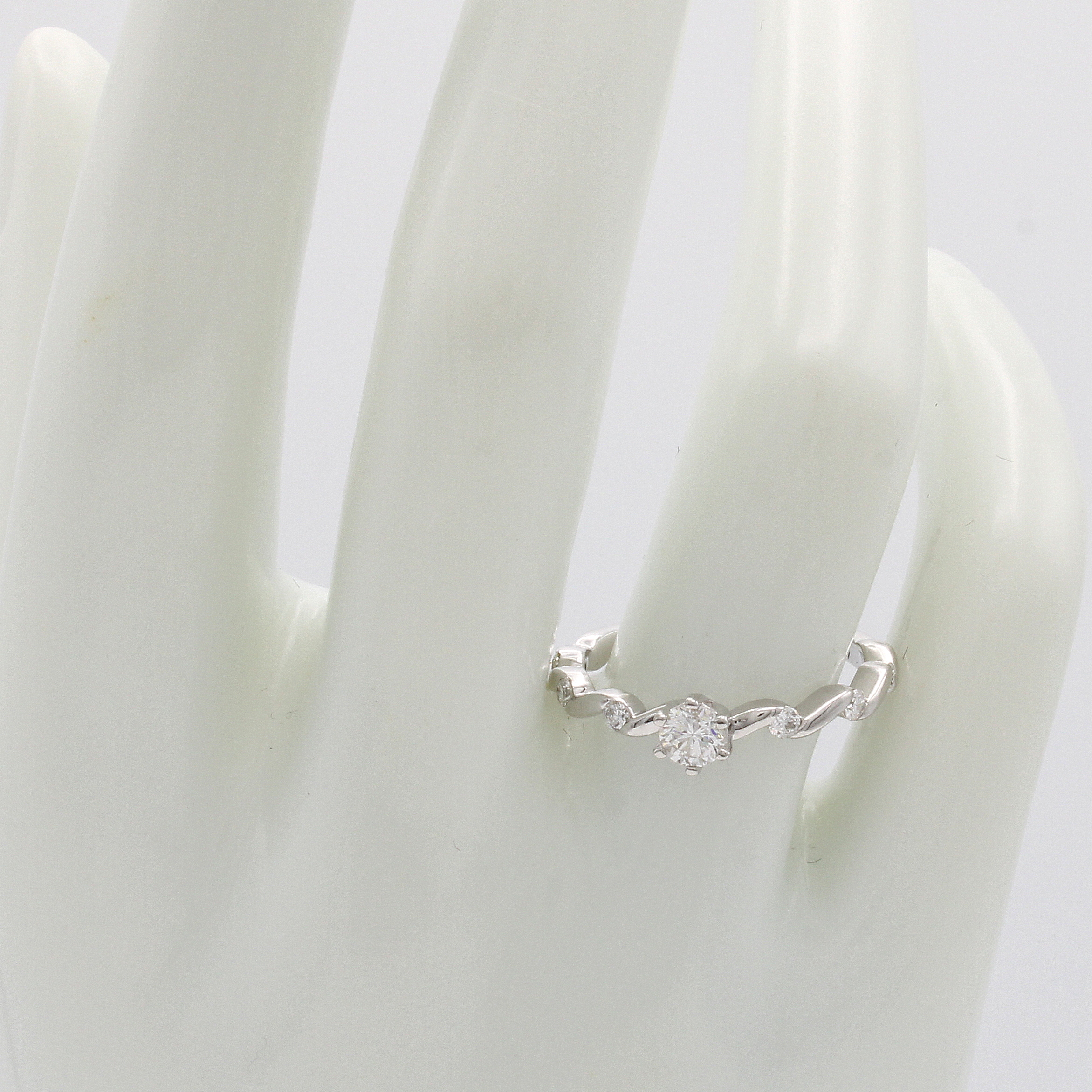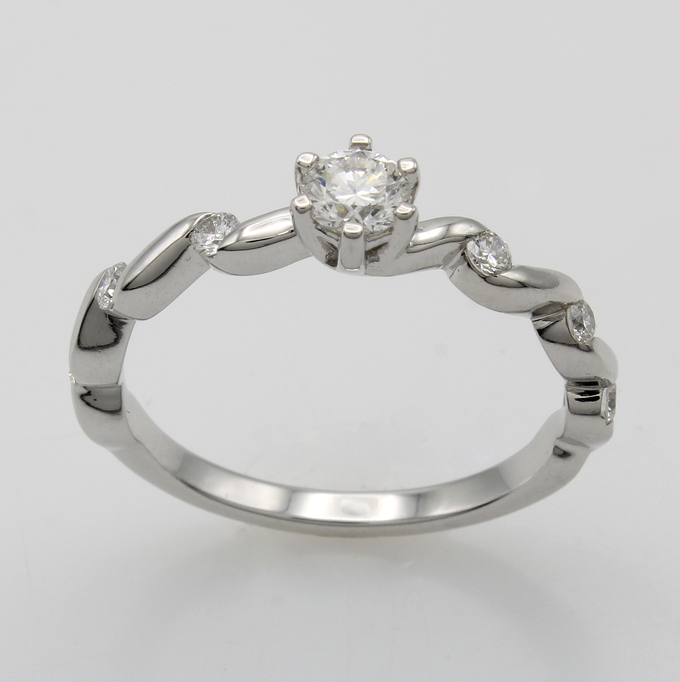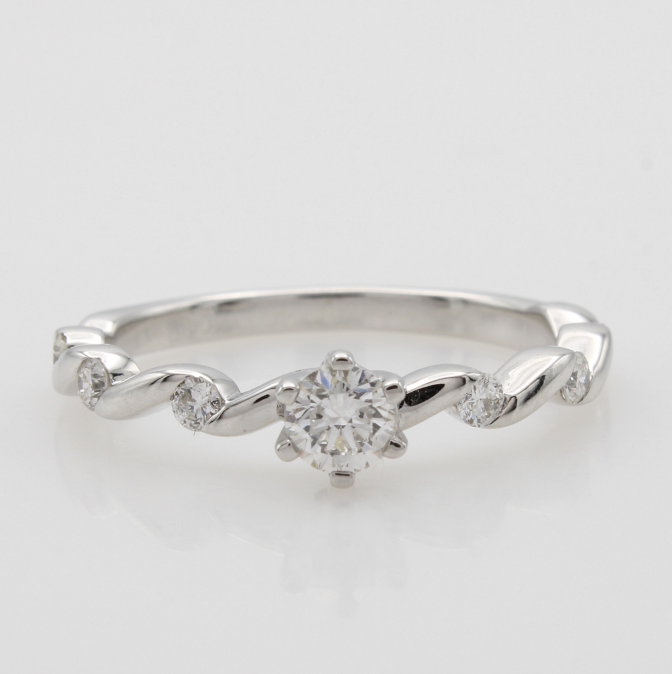 Ring mit Brillanten, WG 585/000, Mittelsteinca. 0.30 ct u. 6 Brill. zus. ca. 0.20 ct Weiß/si, gewellte Ringschiene, RW ca. 56 Schätzpreis: 2550, - EUR