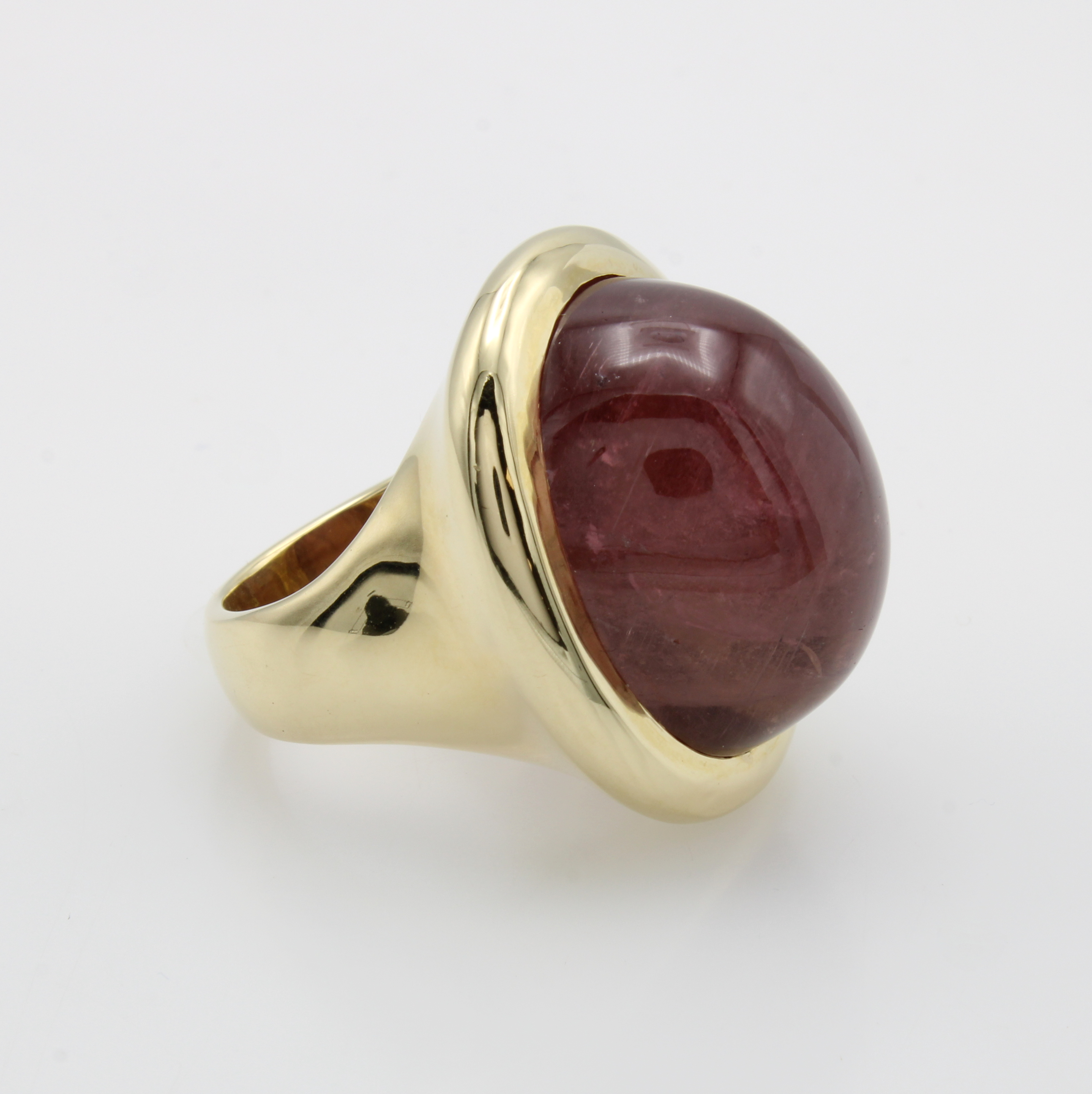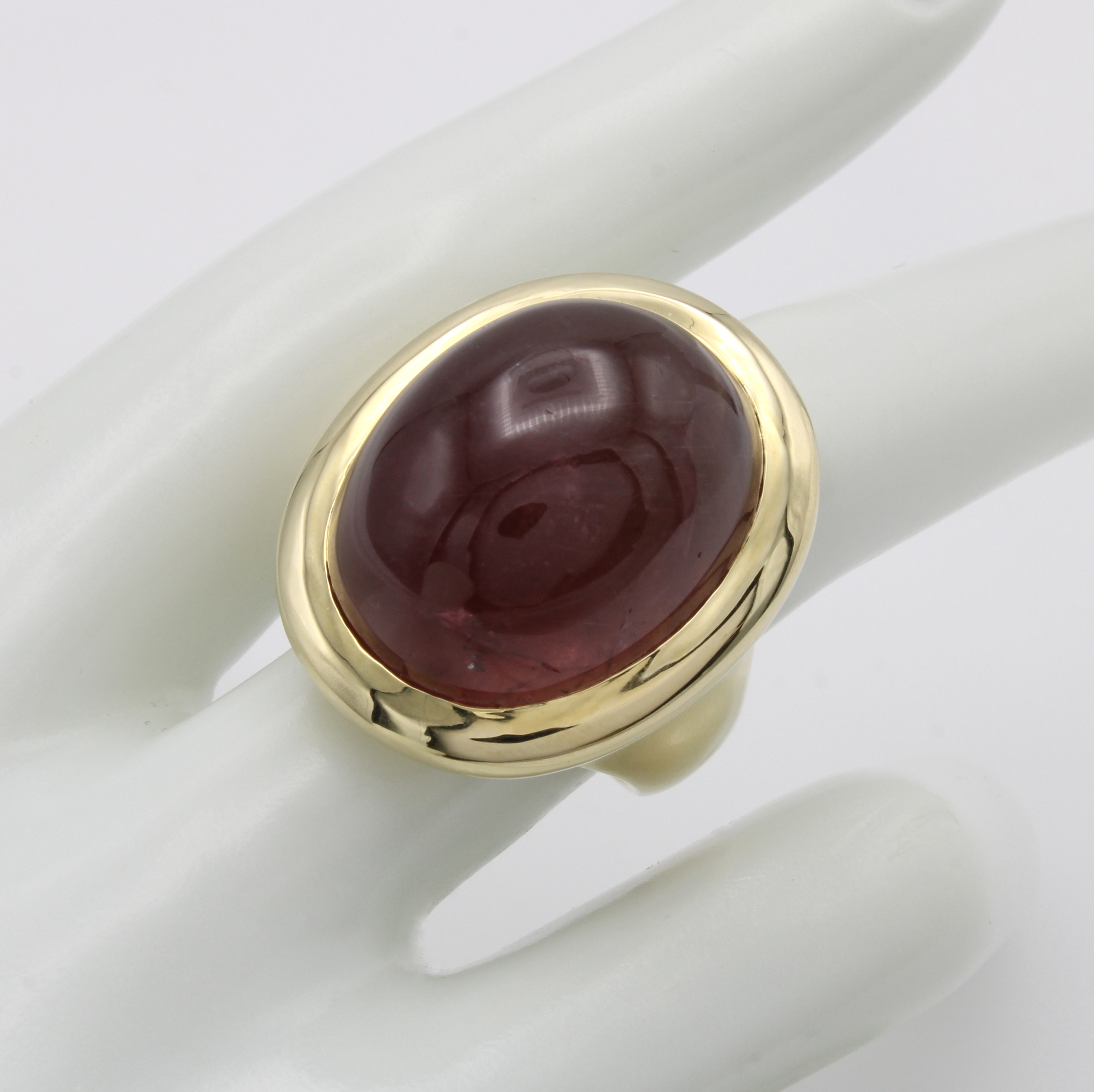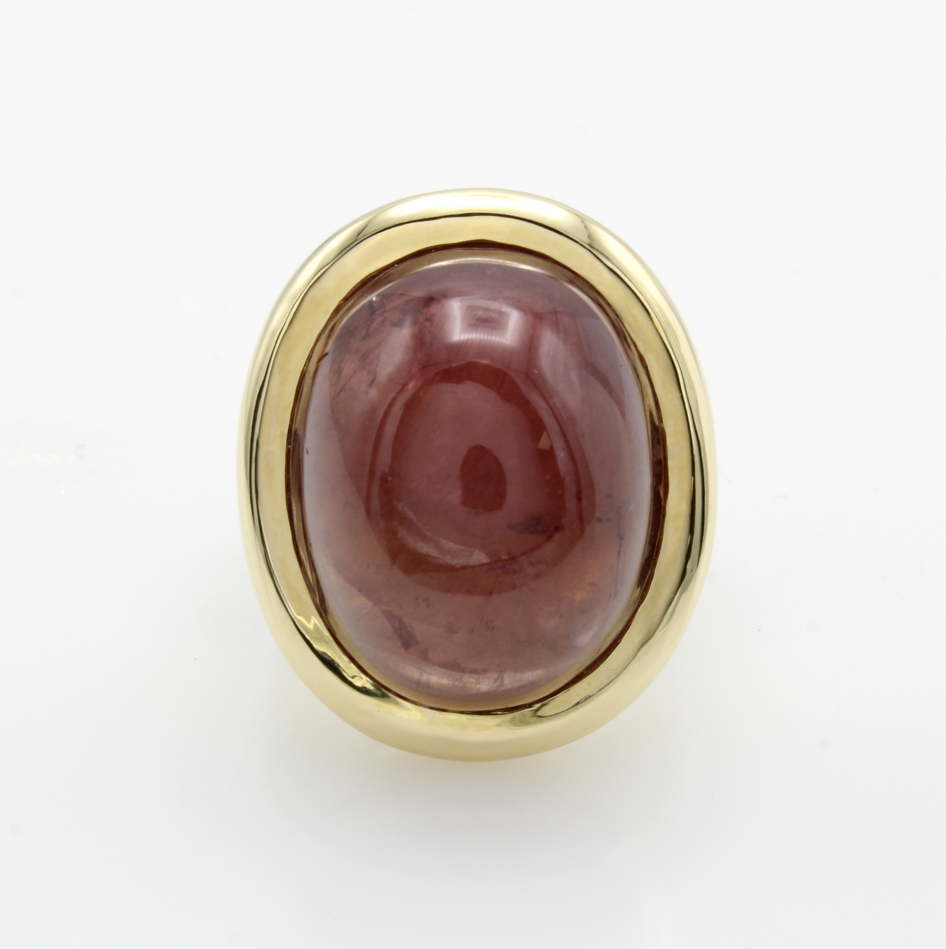 Ring mit Turmalin, GG 585/000, Turmalin- cabochon in breiter, glatter Fassung ca. 60 ct, RW ca. 59 Schätzpreis: 9900, - EUR