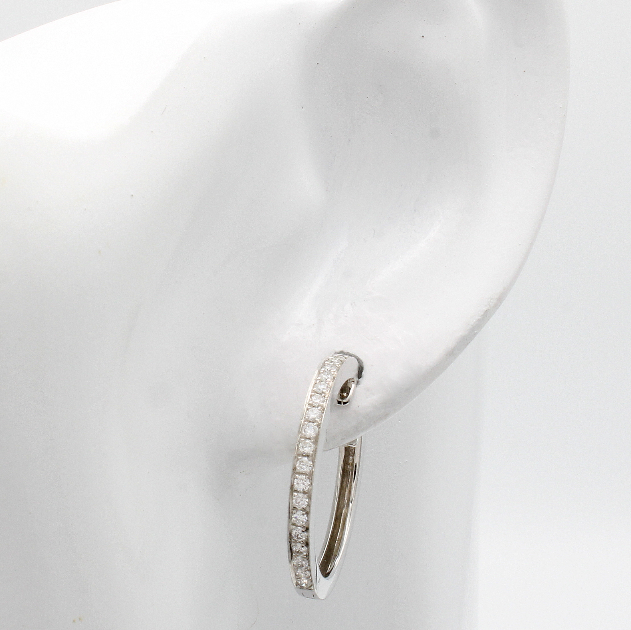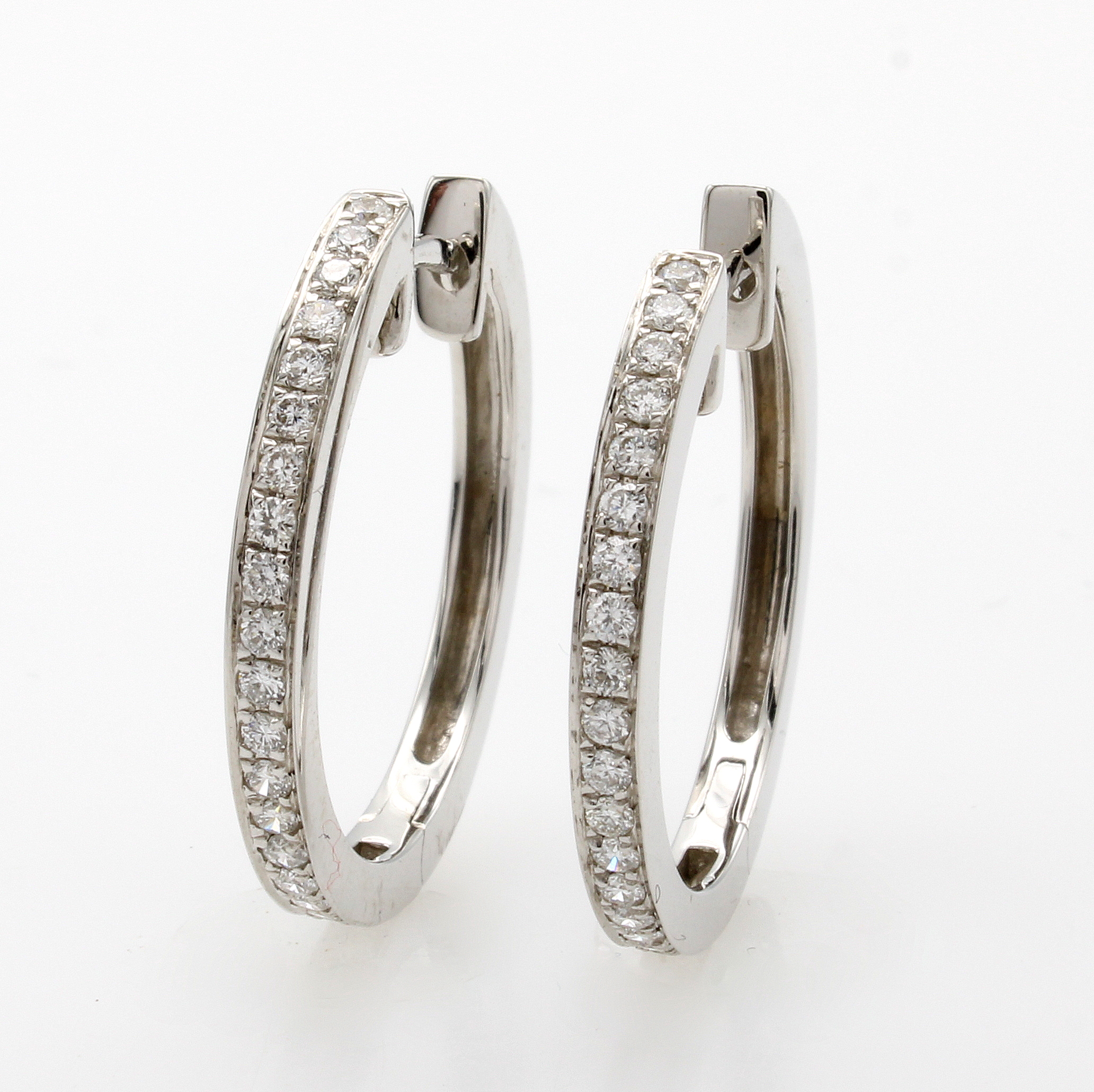 Paar Klappcreolen mit Brillanten, WG 750/000, Vorderseiten bes. m. Brill. zus. ca. 0.45 ct feines Weiß/si, Innend. ca. 18 mm Schätzpreis: 3940, - EUR