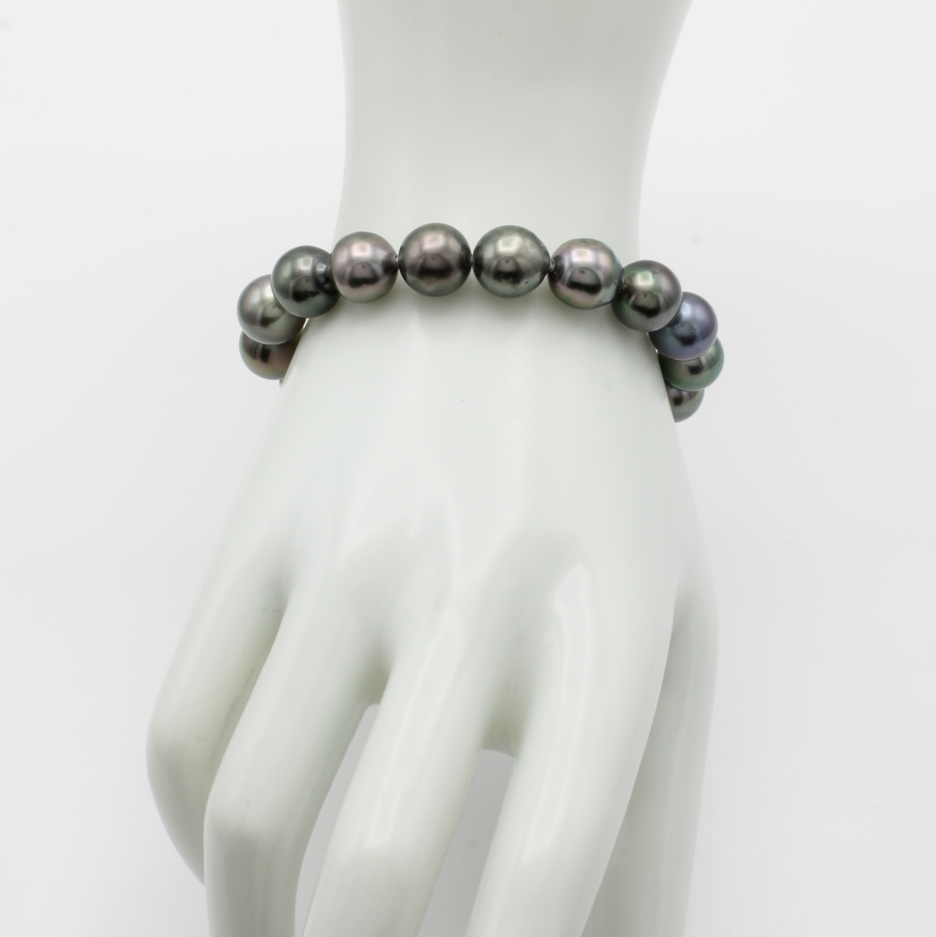Elastisches Tahitizuchtperlenarmband, dunkelgraue, l. barocke Perlen ca. 10.5-11 mm Schätzpreis: 1060, - EUR