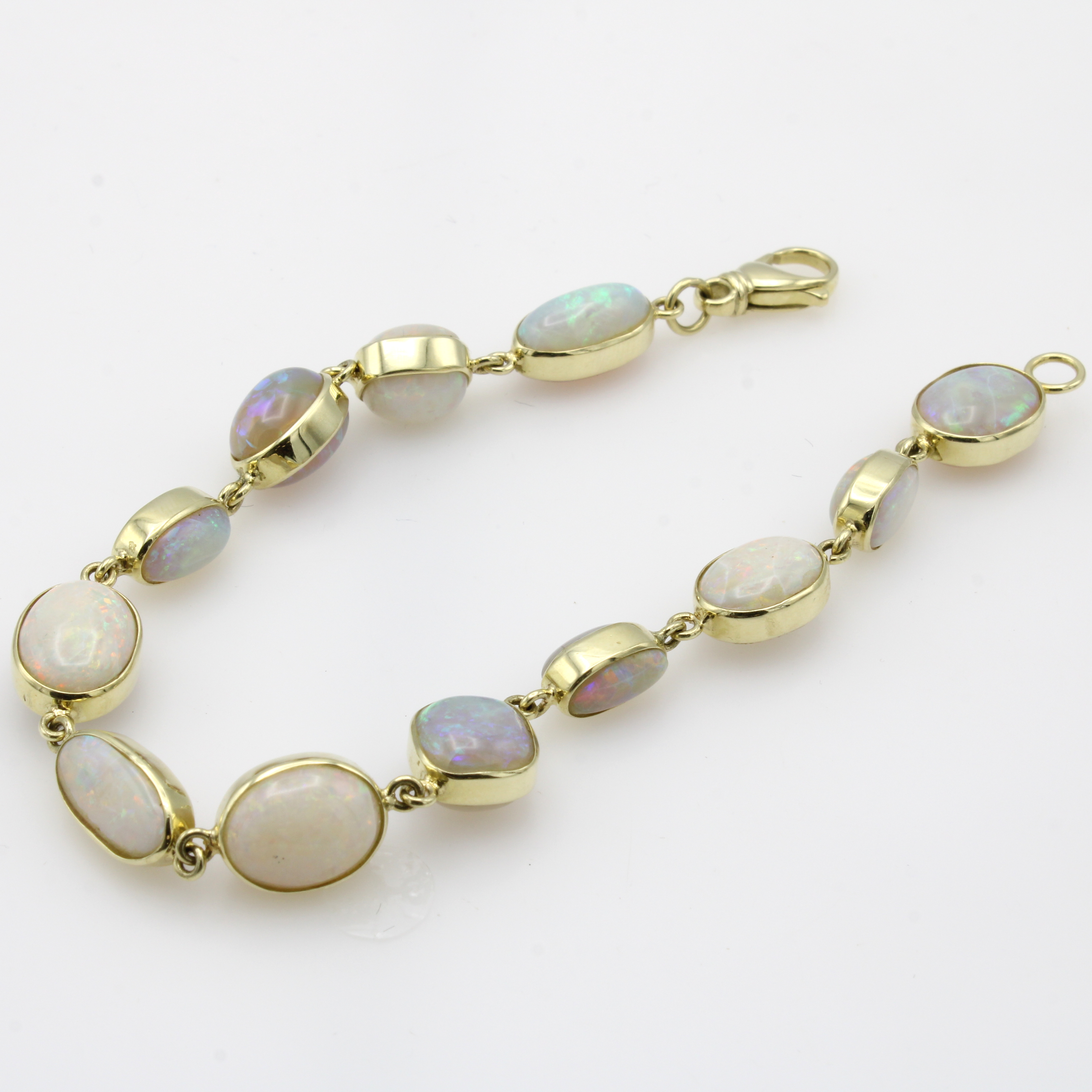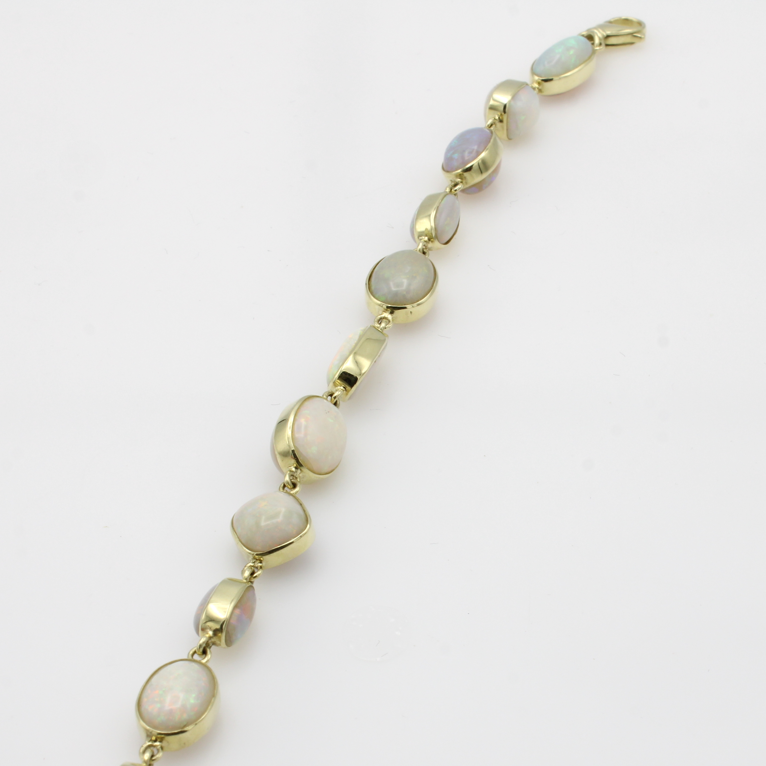 Armband mit Opalen, GG 585/000, Opalcabochons in versch. Formen zus. ca. 39.4 ct, Karabinerschl., L. ca. 22 cm Schätzpreis: 7000, - EUR