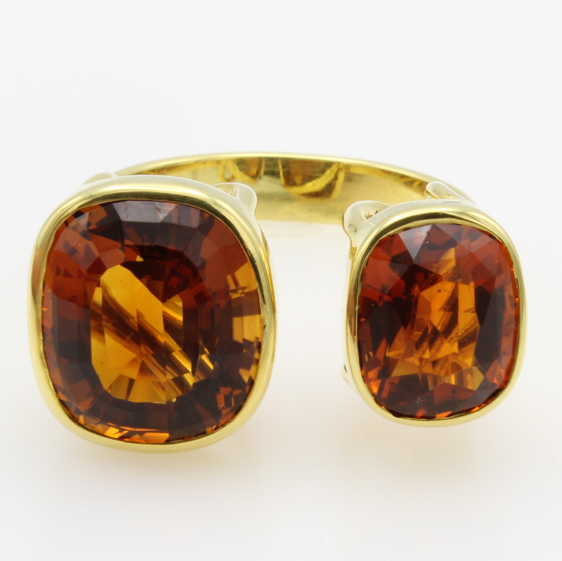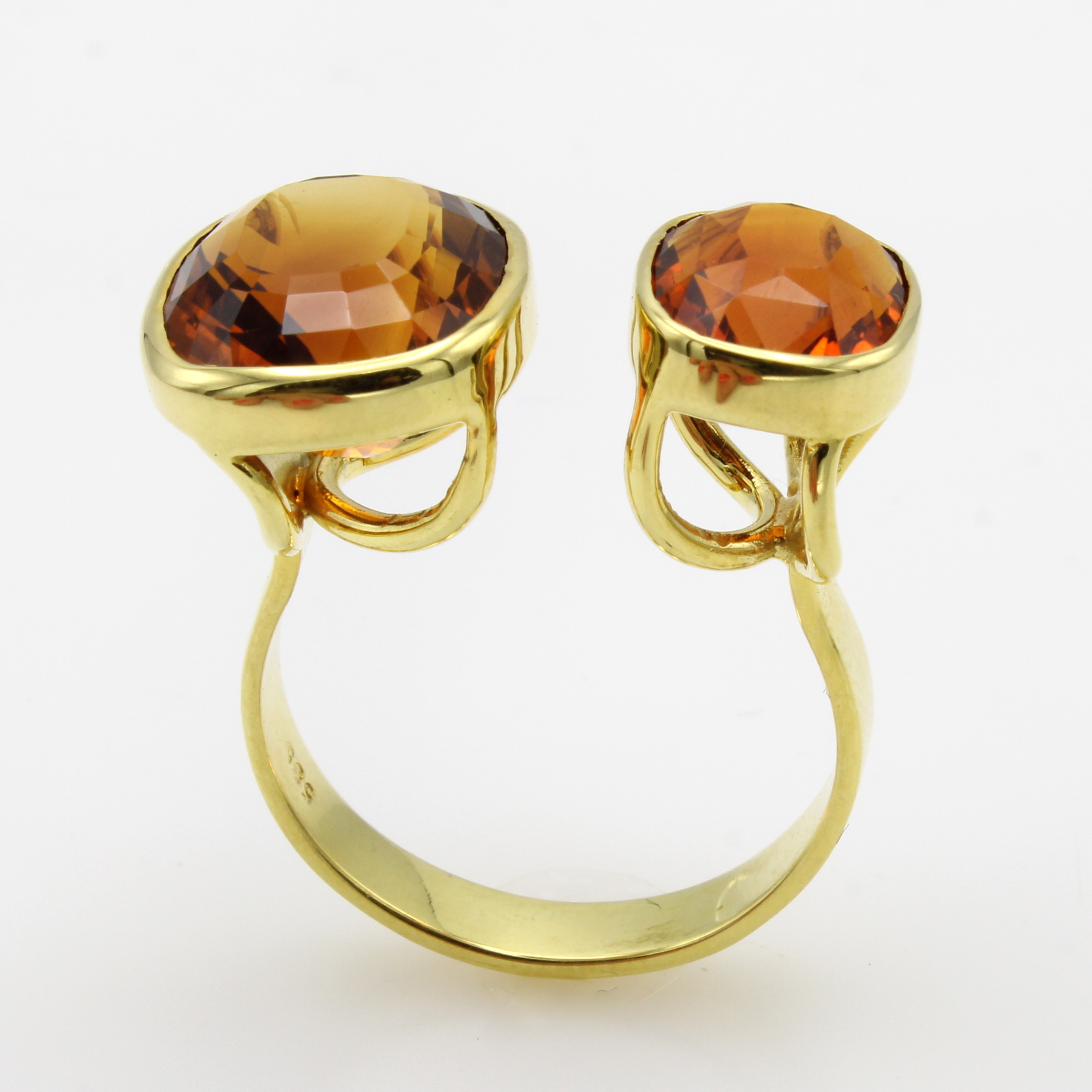 Ring mit Citrinen, GG 585/000, 2 fac. Citrine zus. ca. 12.4 ct, RW ca. 60 Schätzpreis: 2600, - EUR