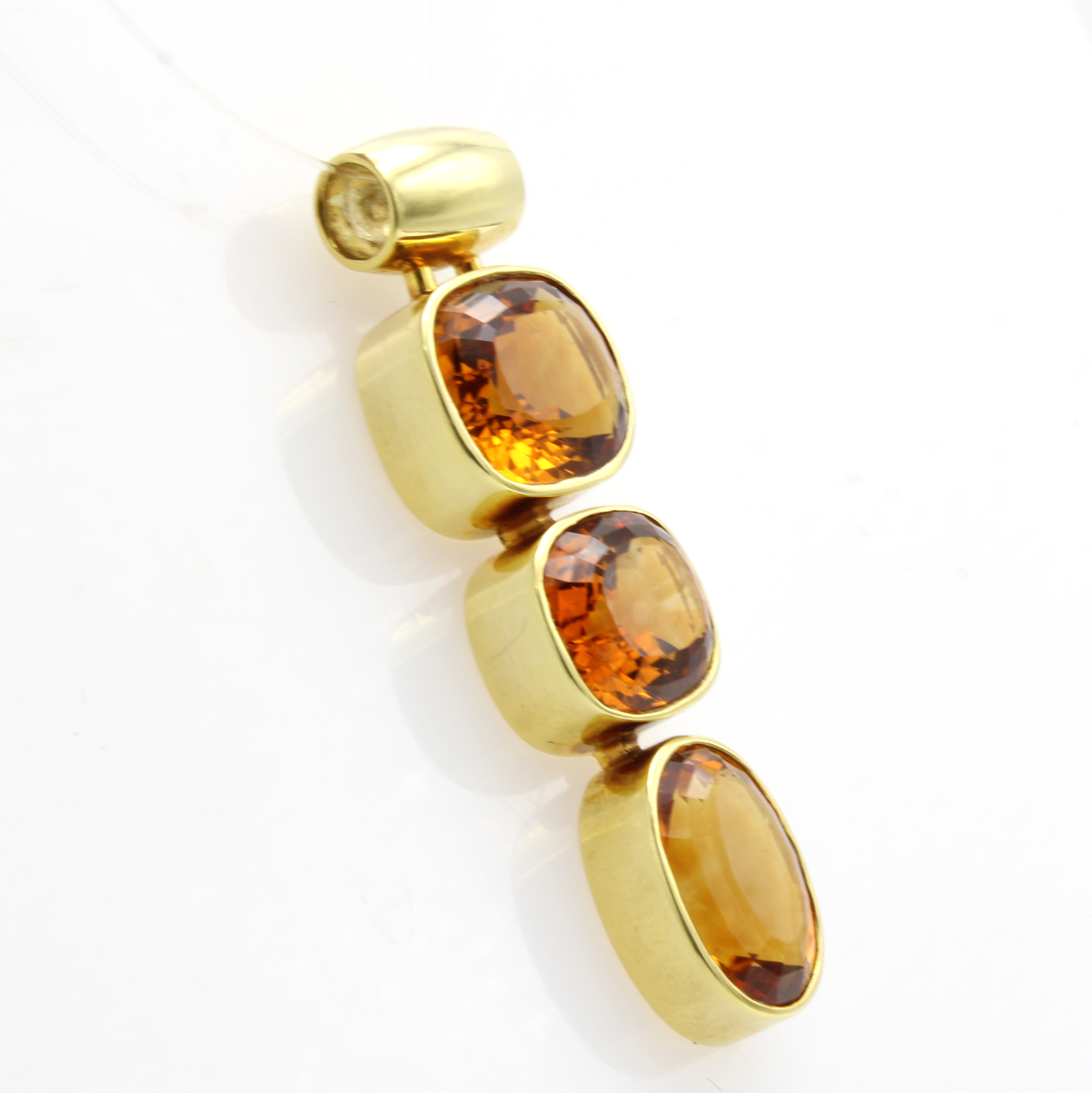 Anhänger mit Citrinen, GG 585/000, 3 fac. Citrine im Schachbrettschliff in versch. Formen zus. ca. 19.2 ct Schätzpreis: 2480, - EUR