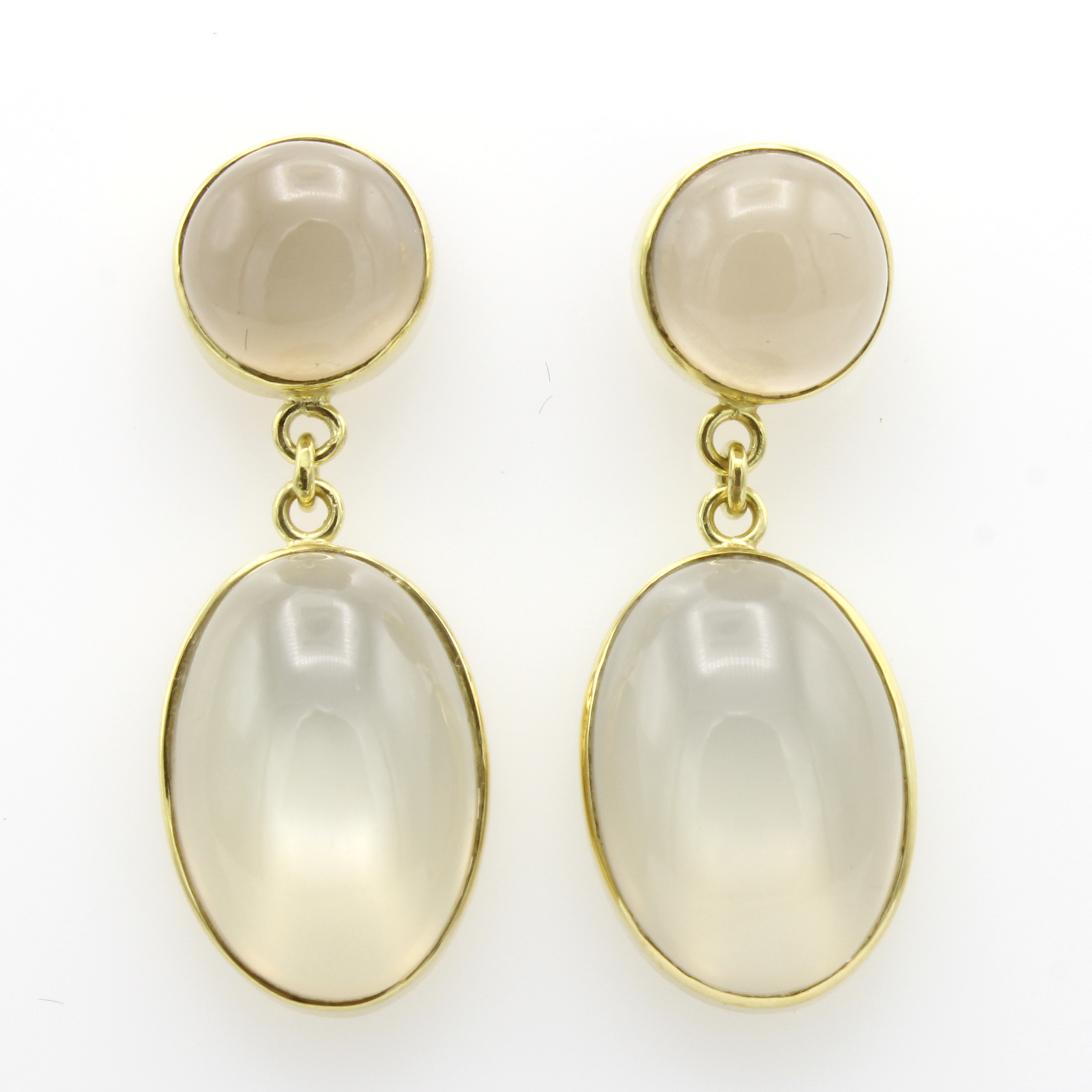 Paar Ohrstecker mit Mondsteinen, GG 585/000,ovale Mondsteincabochons zus. ca. 44.8 ct Schätzpreis: 3500, - EUR