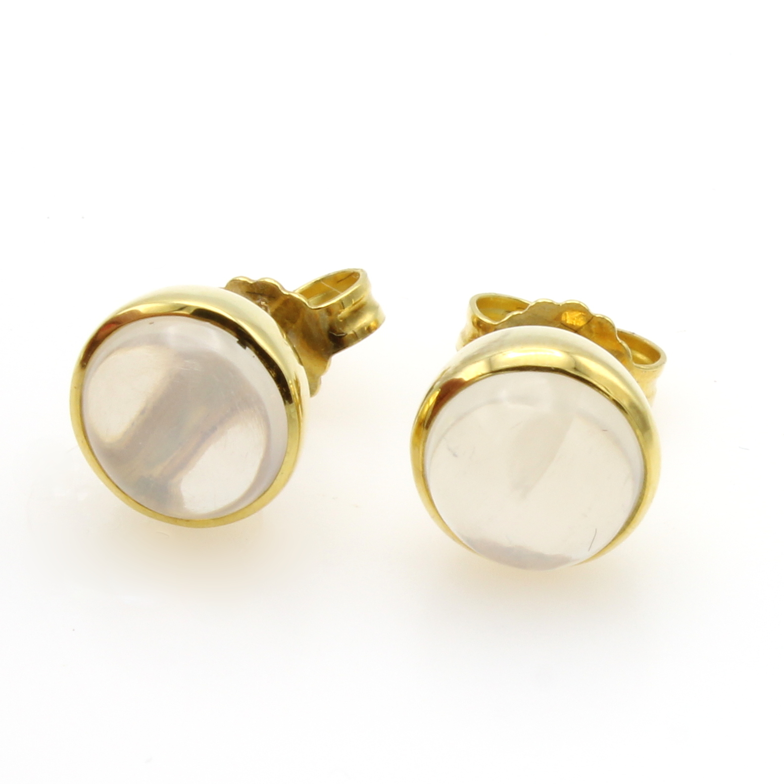 Paar Ohrstecker mit Mondsteinen, GG 585/000,2 runde Mondsteincabochons zus. ca. 3 ct Schätzpreis: 780, - EUR