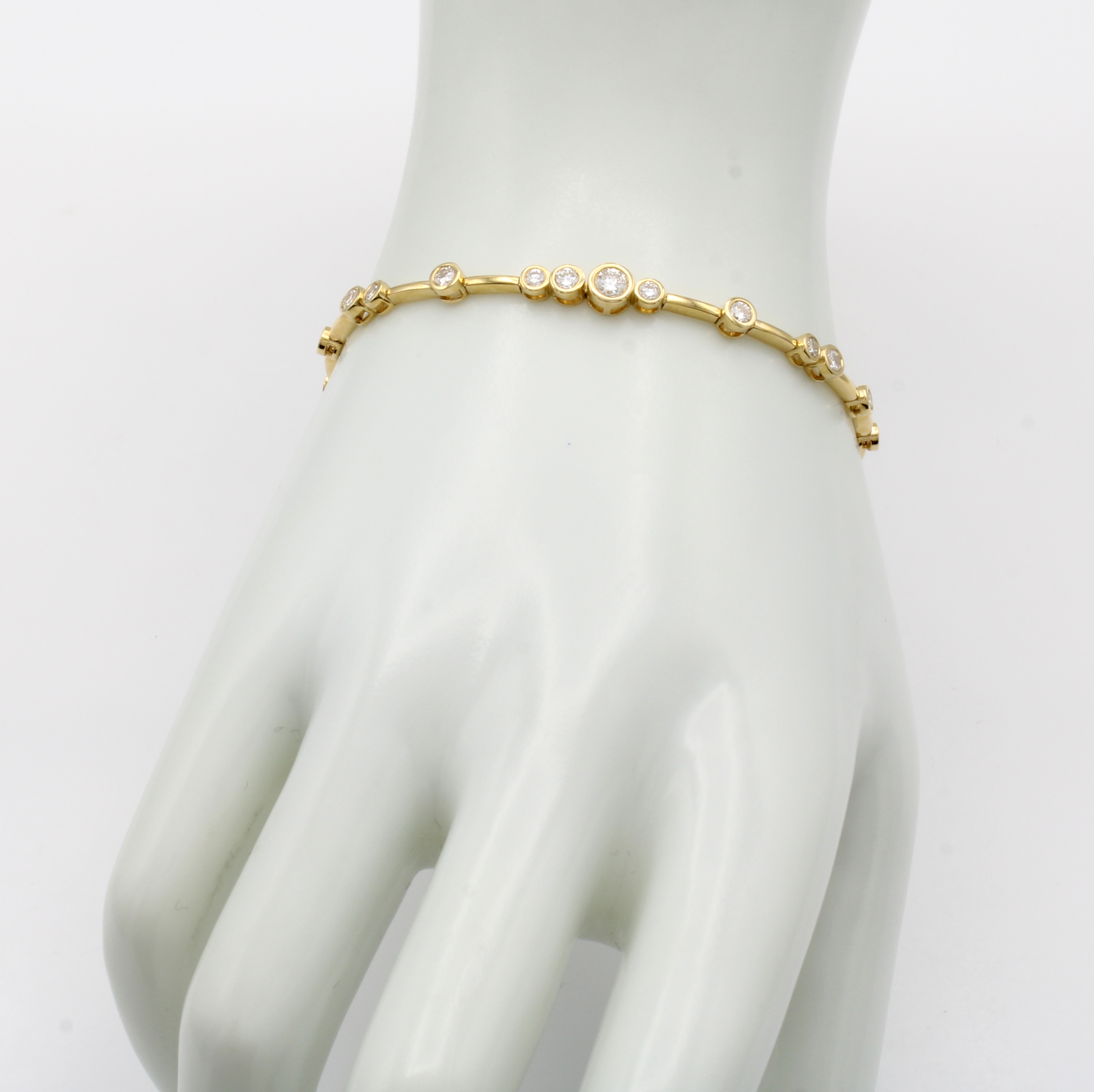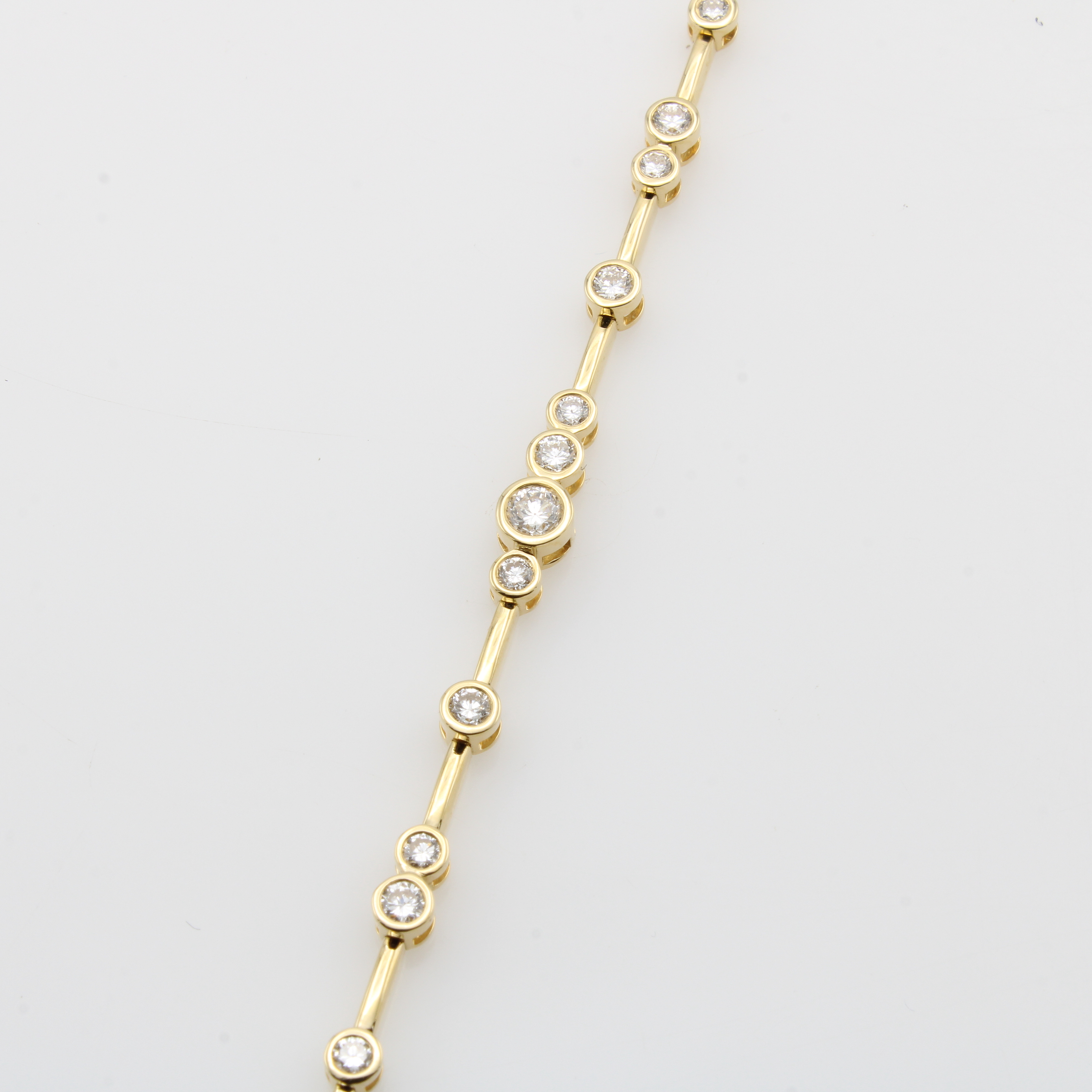 Gliederarmband mit Brillanten, GG 750/000, Brill. in Zargenfassungen zus. ca. 1.59 ct feines Weiß/vs, Kastenschl. m. doppelter Sicherheitsacht, L. ca. 18 cm Schätzpreis: 8700, - EUR
