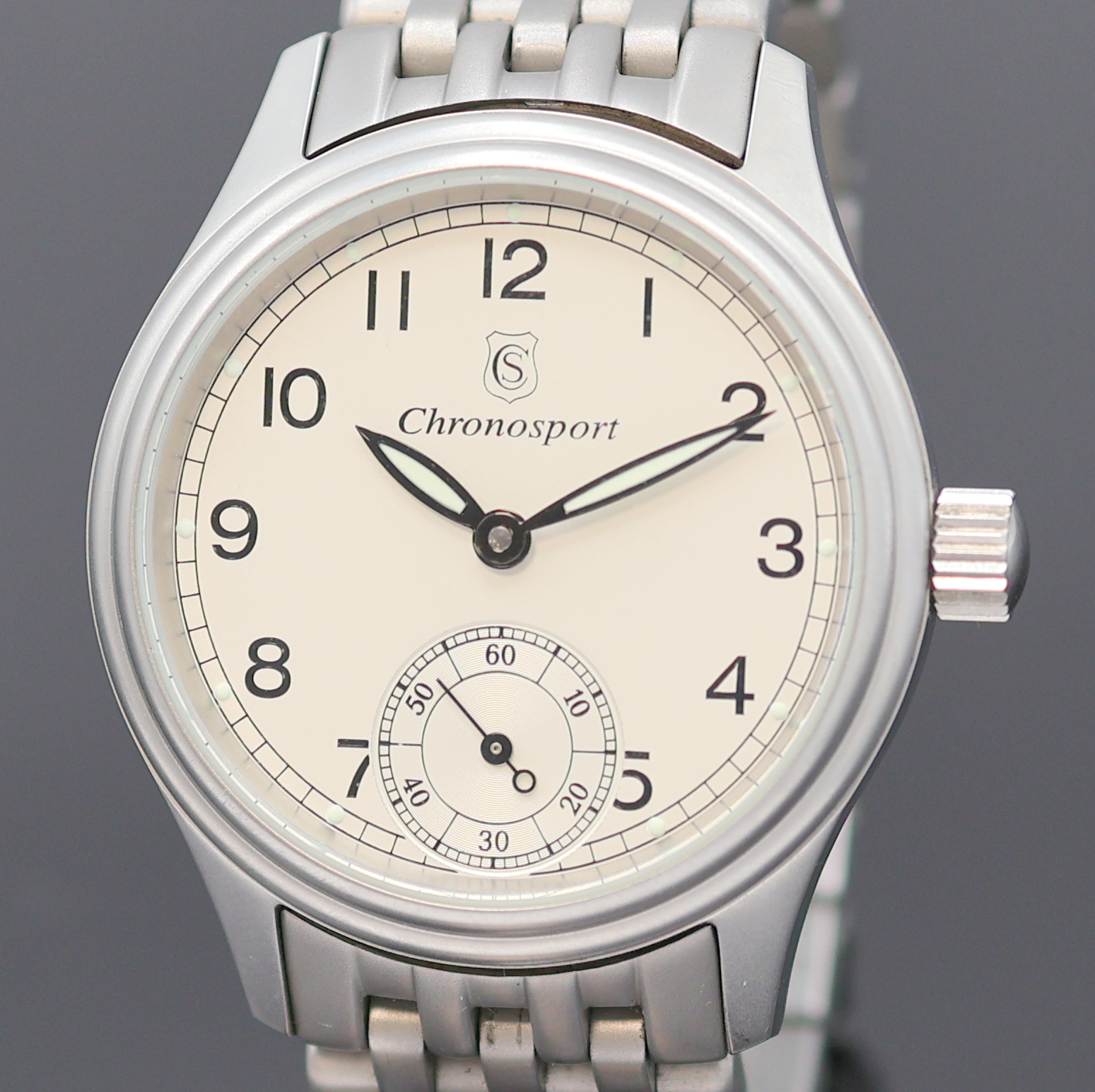 CHRONOSPORT Herrenarmbanduhr in Stahl, Schweiz um 2005, Handaufzug, Boden verschr.,