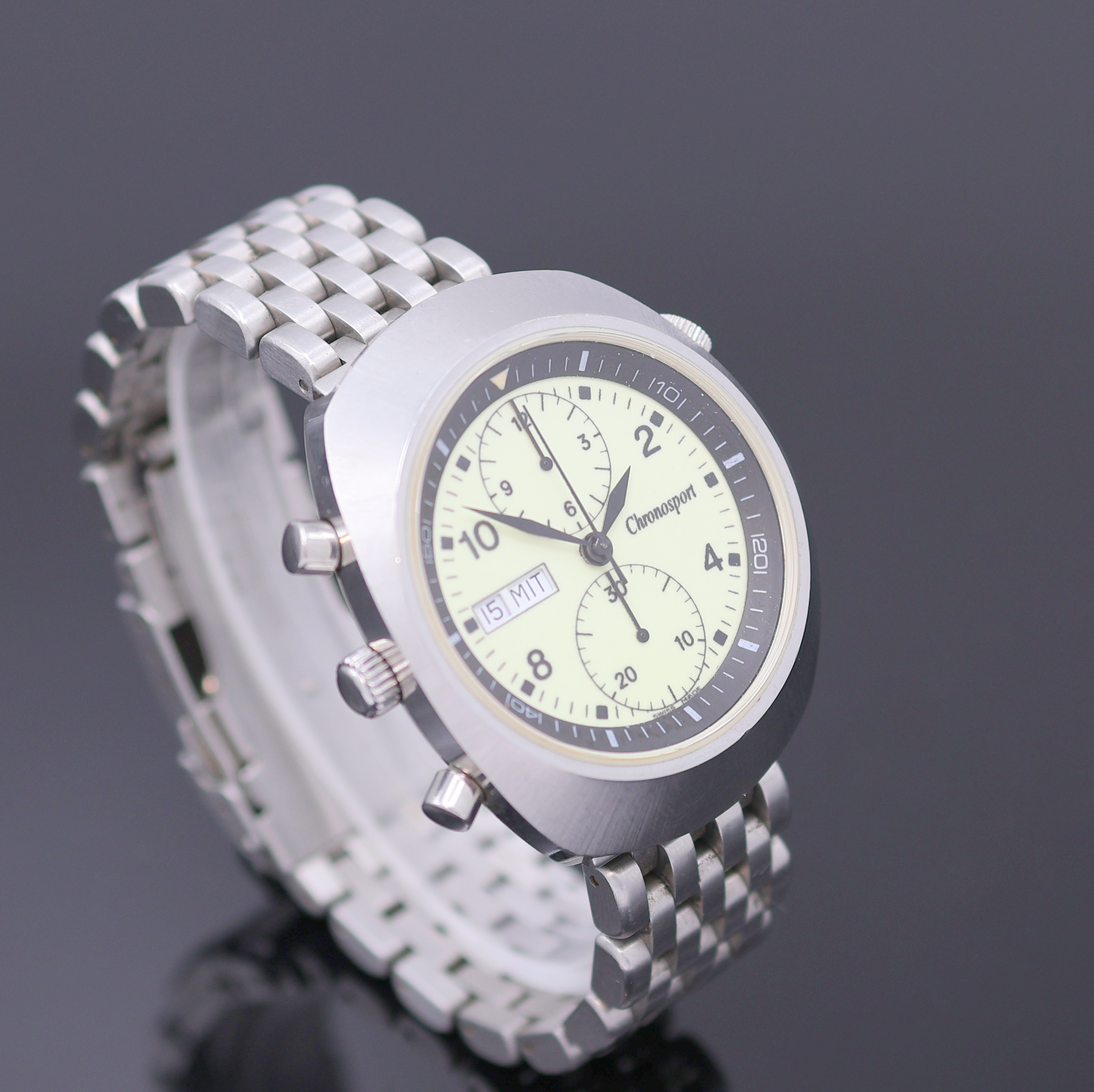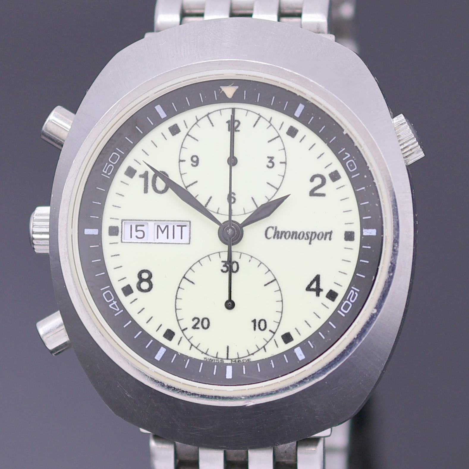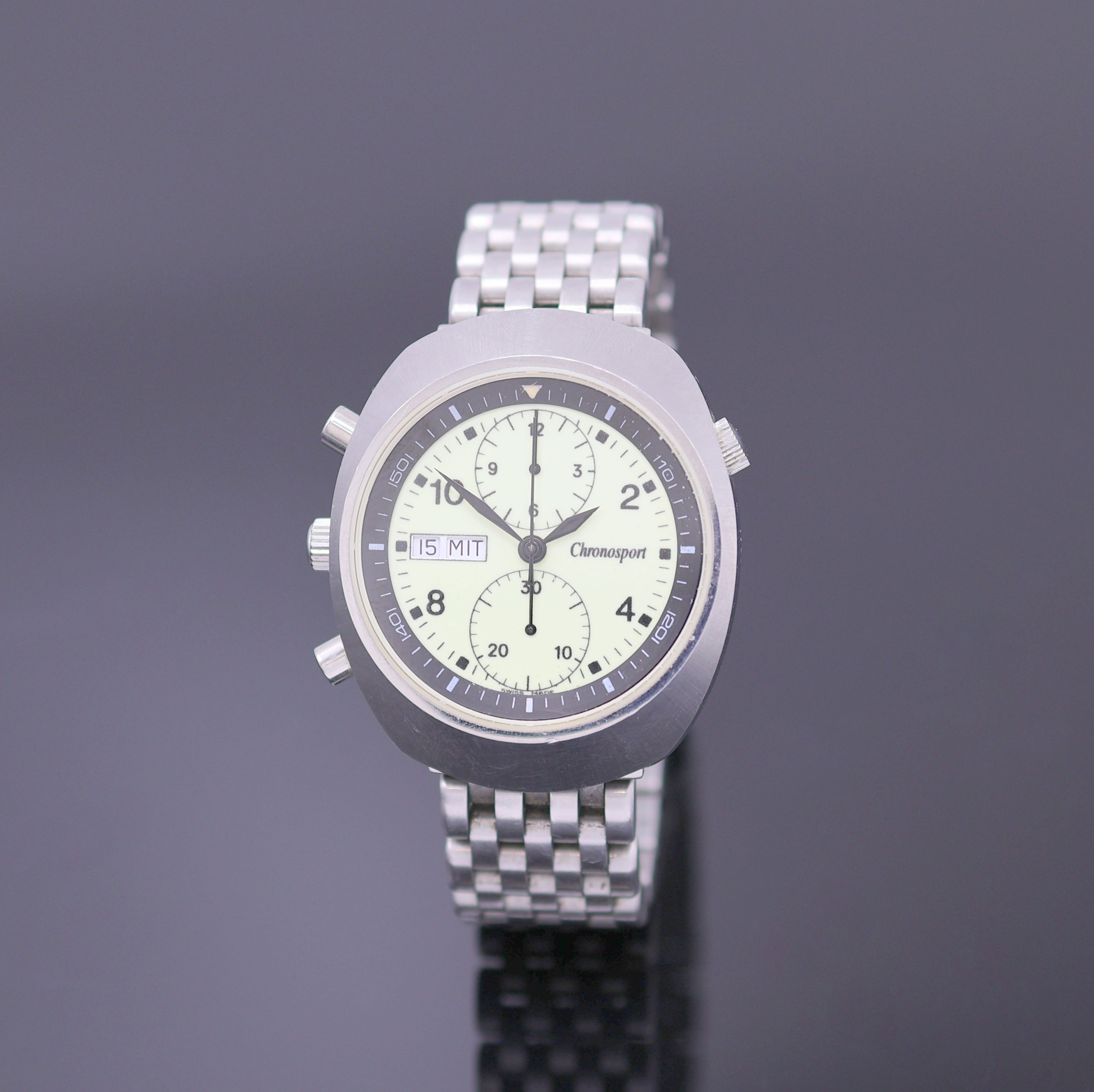 CHRONOSPORT Armbandchronograph in Stahl, Schweiz um 2004, Automatik, Boden u. Krone