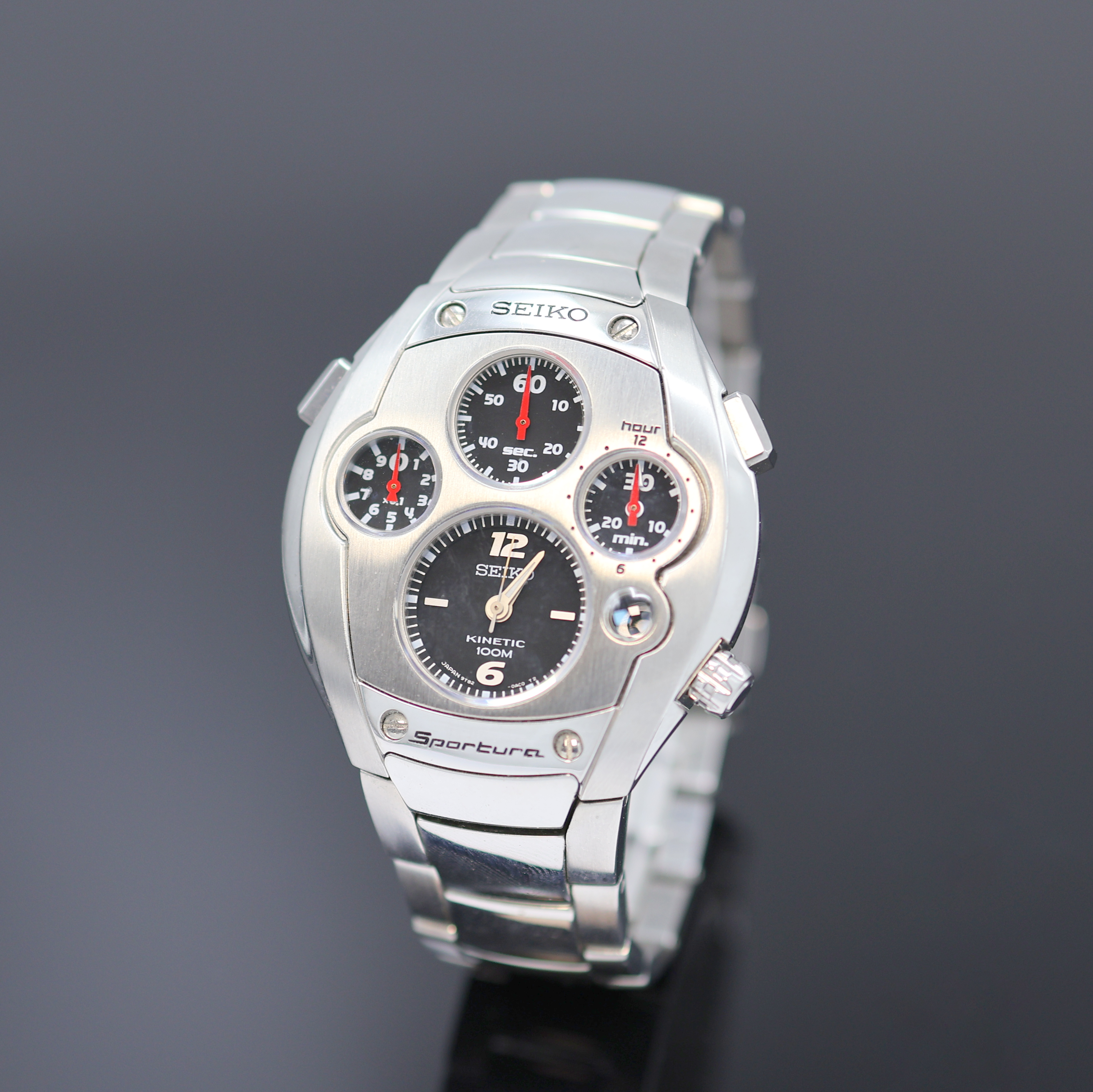 SEIKO Kinetic Sportura Herrenarmbanduhr mit Chronograph Referenz 9T82-0AC0, Japan