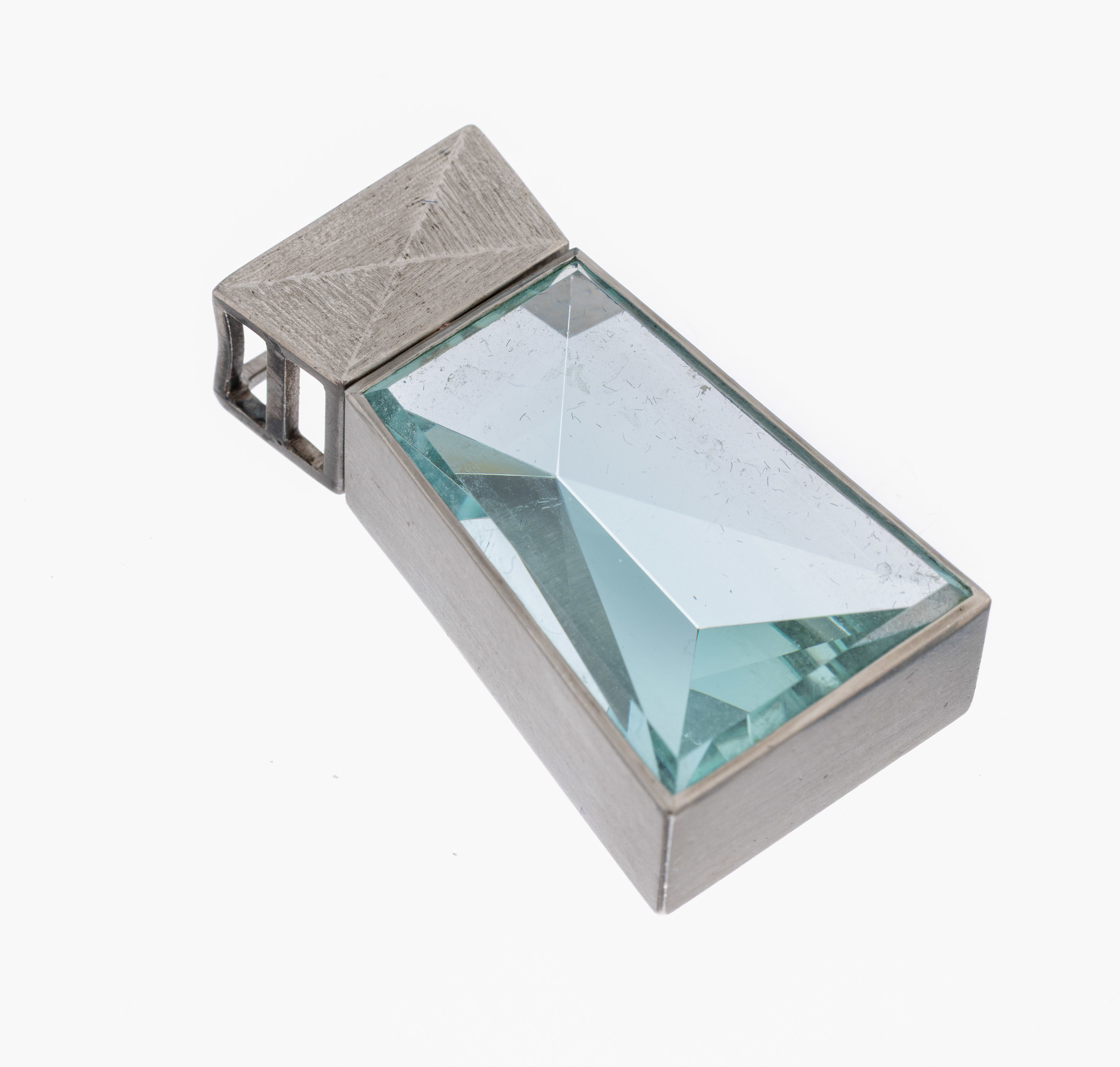 Platin Aquamarin-Anhänger, Pt 950/000, schwere qualitätvolle Handarbeit, Aquamarin