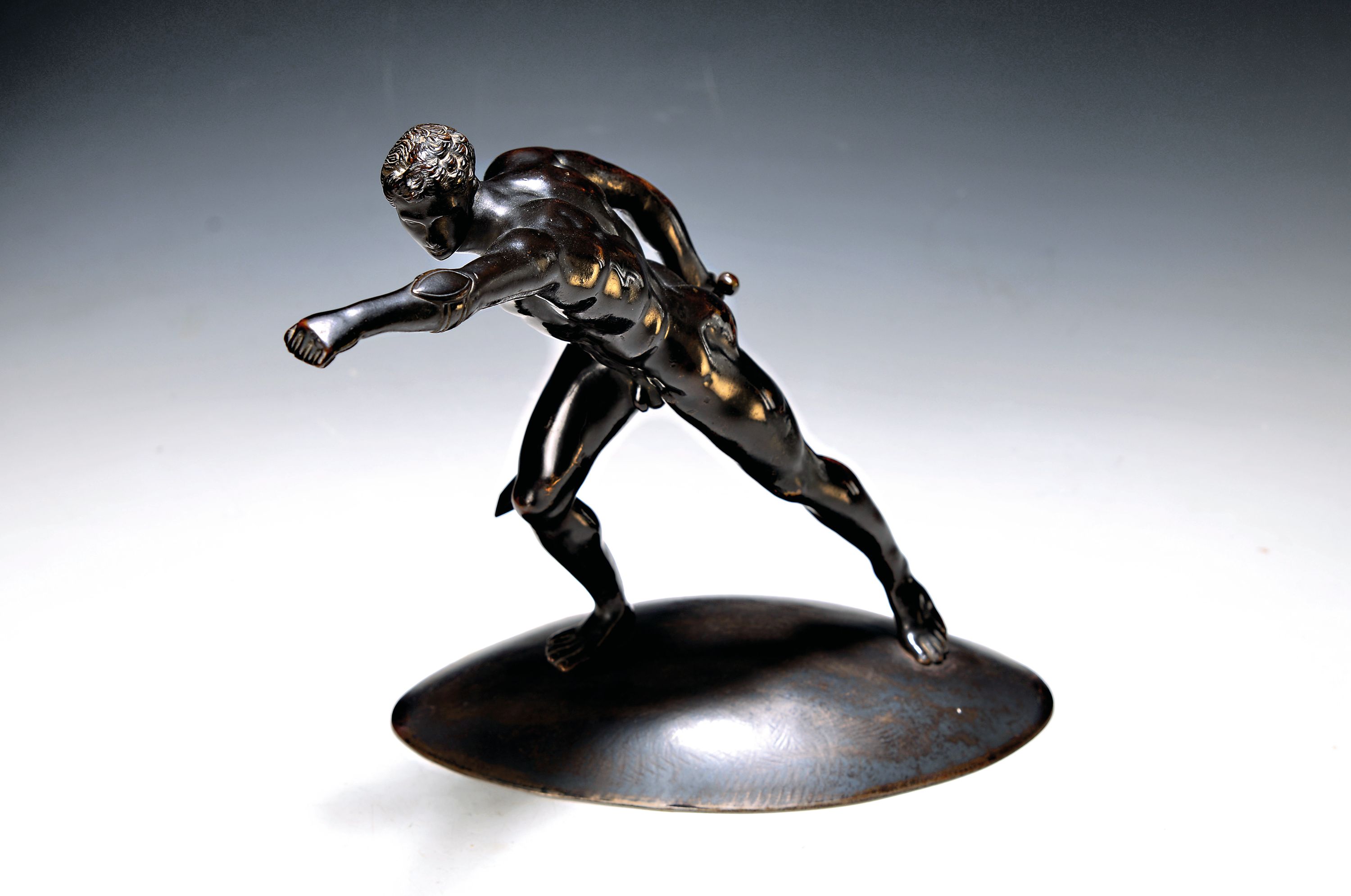 Bronzefigur, Borghesischer Fechter, Gladiator, Bronze, nach antikem Vorbild, auf