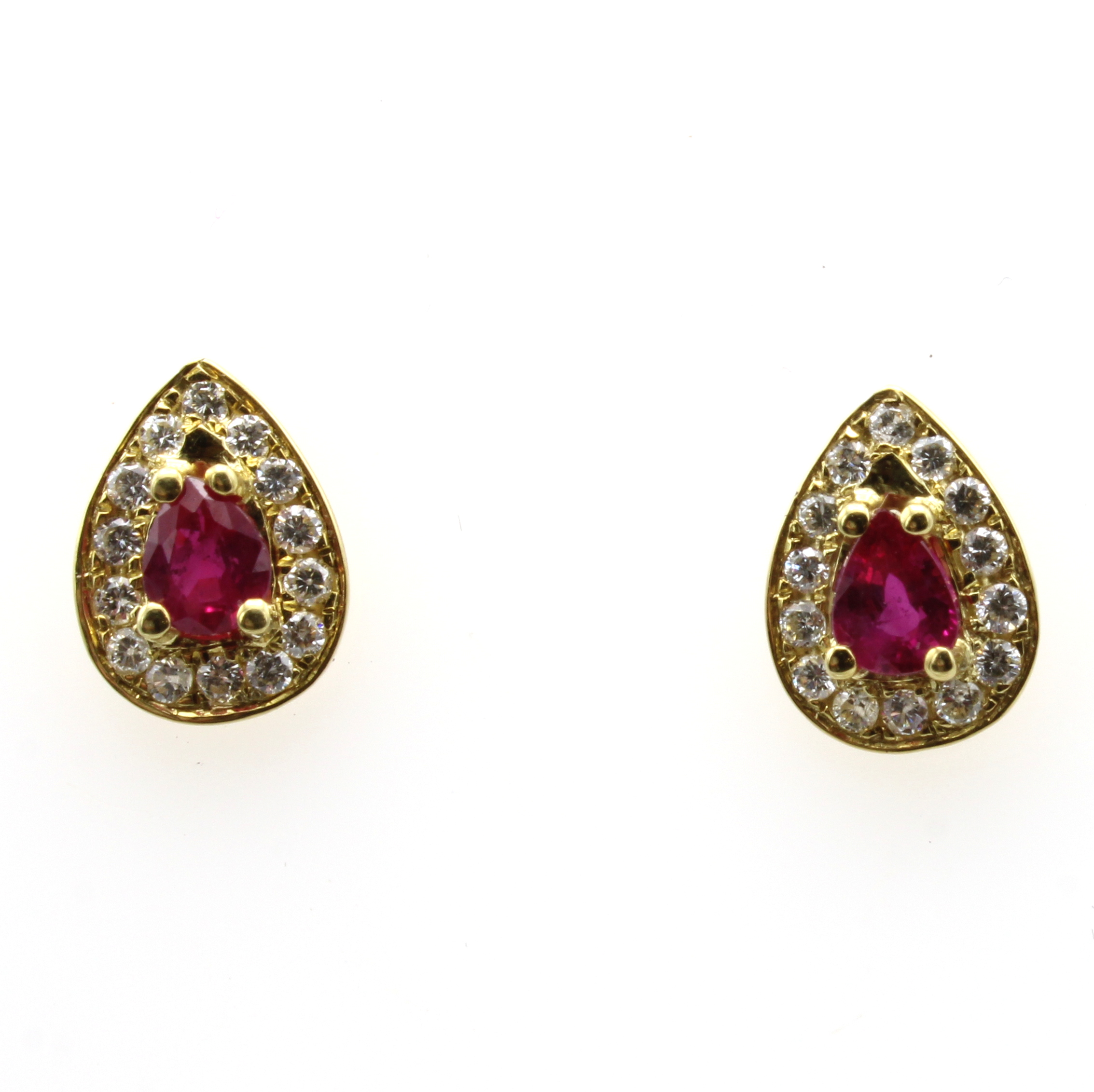 Paar Ohrstecker mit Rubinen und Brillanten, GG 585/000, 2 rote-pinkfarb. Rubintropfen ca. 0.57 ct umgeben v. Brill. zus. ca. 0.25 ctl.get.Weiß/si Schätzpreis: 1800, - EUR