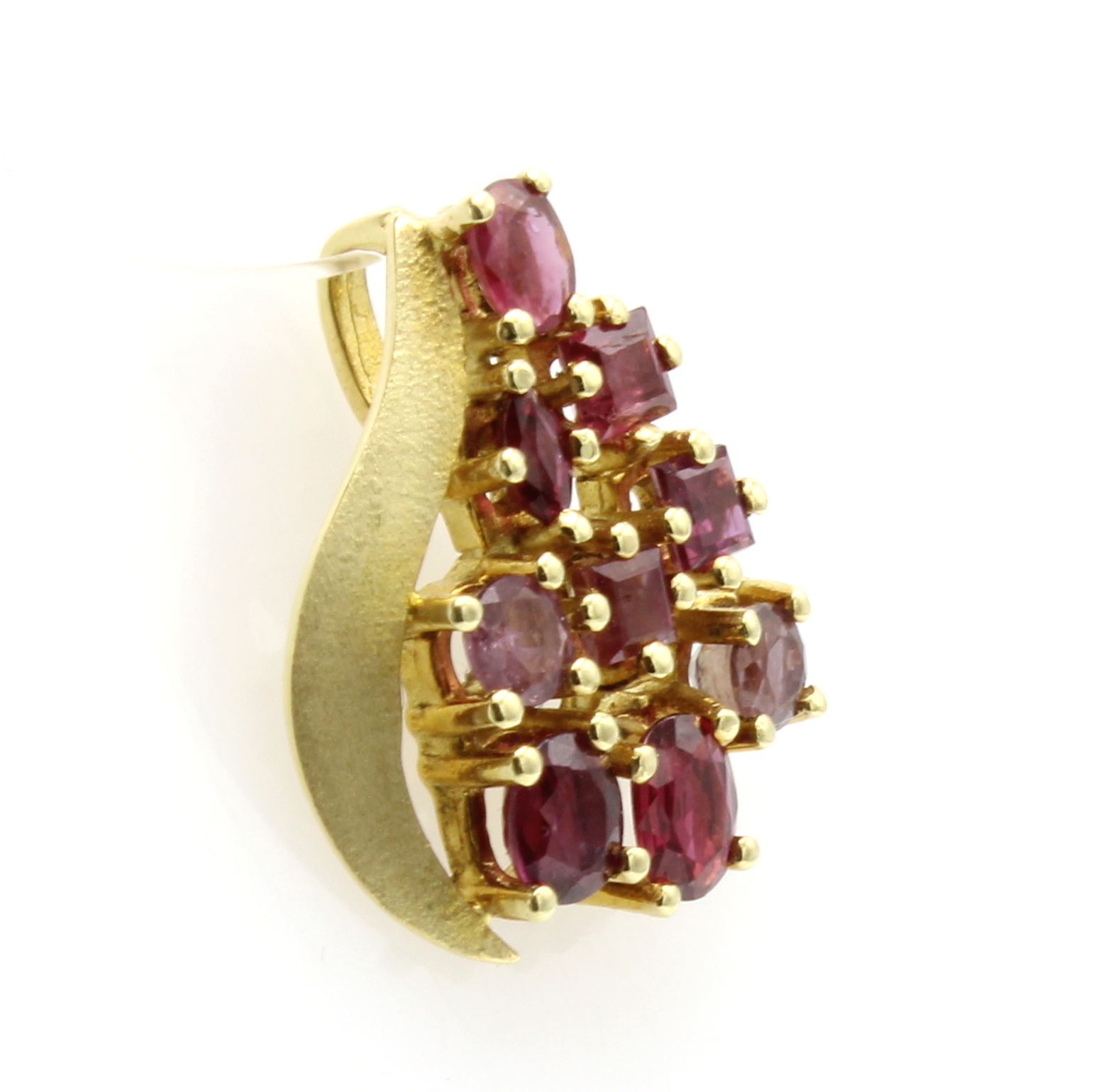 Anhänger mit Rubinen, GG 585/000, Rubine in versch. Schliffarten zus. ca. 3.2 ct, geschwungenes, matt. Element Schätzpreis: 1200, - EUR