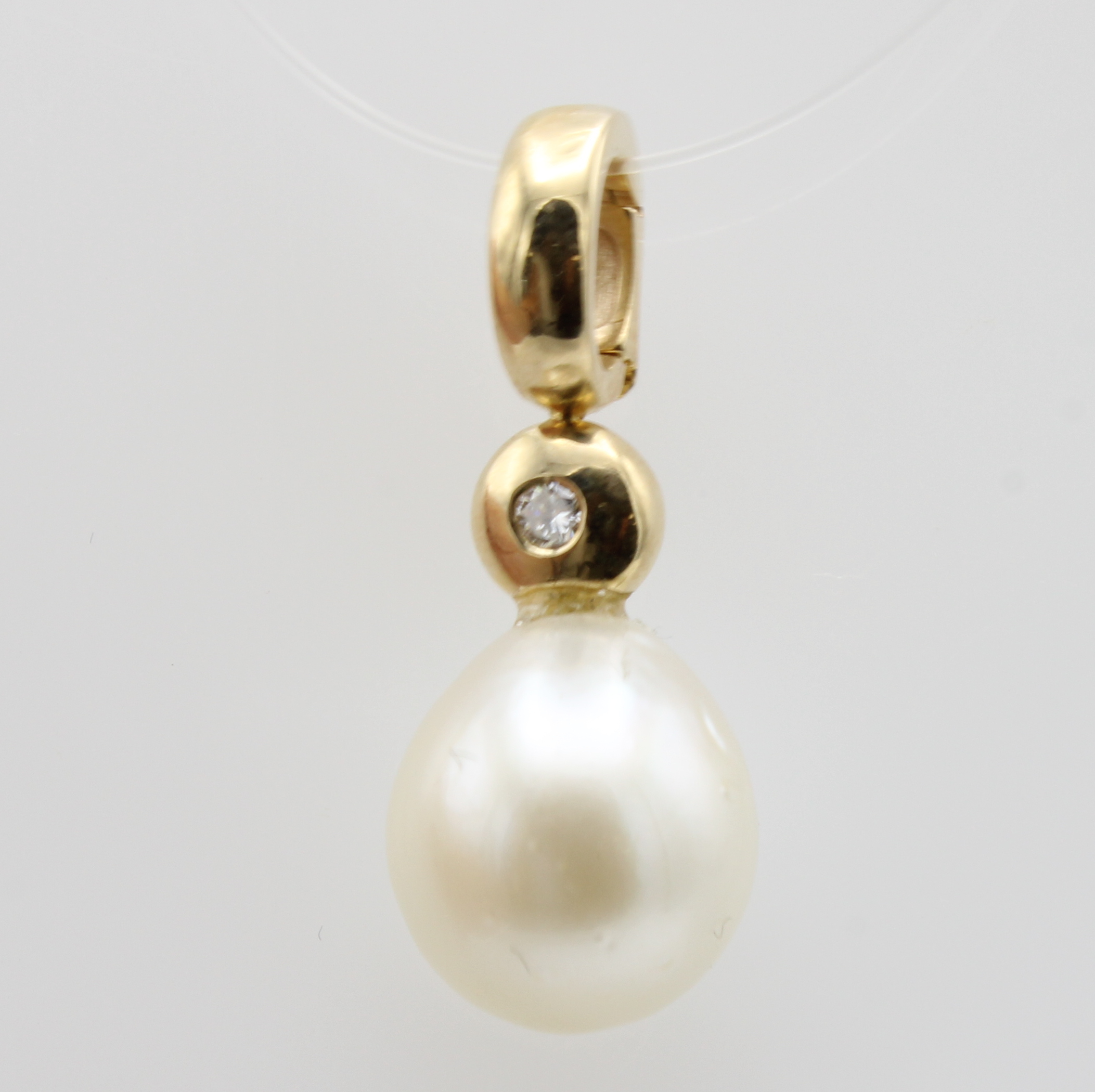 Clipanhänger mit Süßwasserzuchtperle und Brillant, GG 585/000, l. tropfenförm. Perle,Brill. ca. 0.05 ct feines Weiß/si Schätzpreis: 1400, - EUR