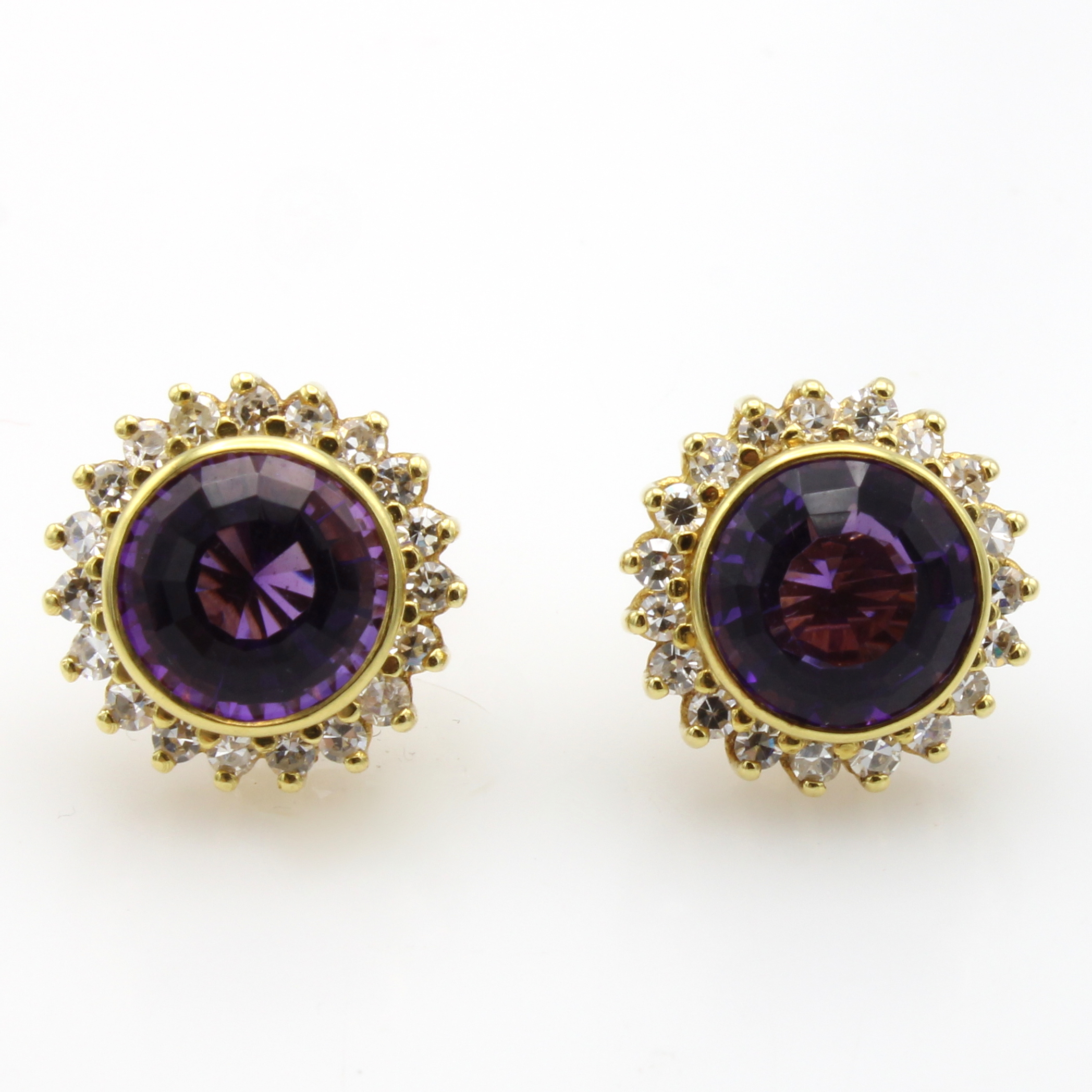 Paar Ohrstecker mit Amethysten und Brillanten, GG 585/000, runde, fac. Amethyste zus. ca. 5 ct umgeben v. Brill. zus. ca. 0.71 ct get.Weiß/si Schätzpreis: 2800, - EUR