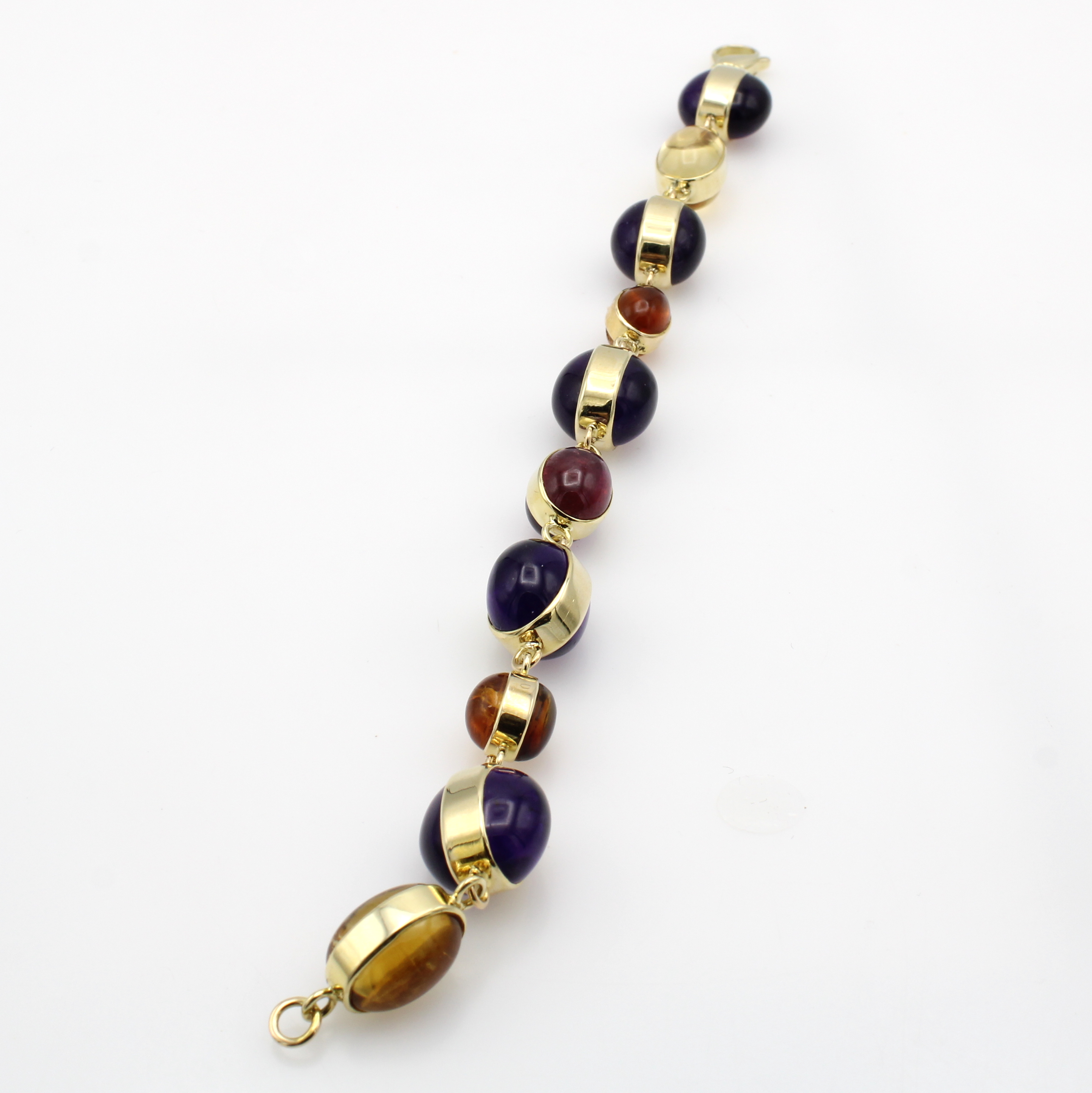Armband mit Farbsteinen, GG 585/000, ovale Citrin- und Amethystcabochons zus. ca. 100 ct,Karabinerschl., L. ca. 22.5 cm Schätzpreis: 6500, - EUR