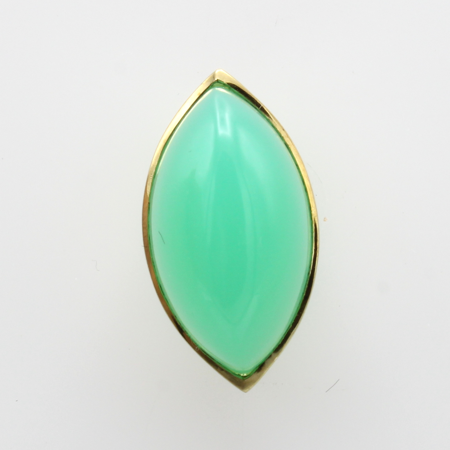 Anhänger mit Chrysopras, GG 585/000, Chrysoprasnavette ca. 8 ct Schätzpreis: 1100, - EUR