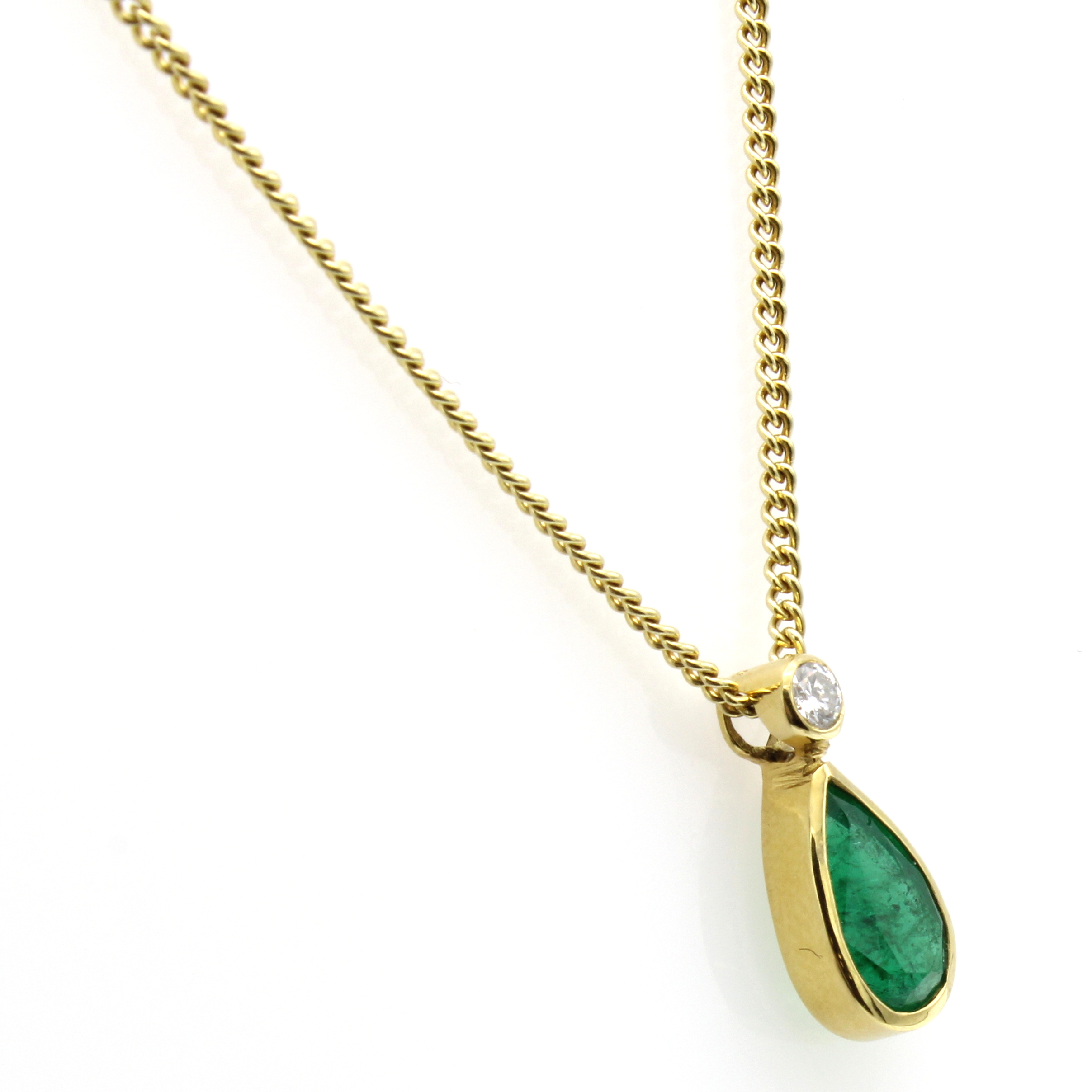 Anhänger mit Smaragd und Brillant, GG 585/000, Smaragdtropfen ca. 1.55 ct, Brill. ca 0.117 ct Weiß/p, L. ca. 43 cm Schätzpreis: 3250, - EUR