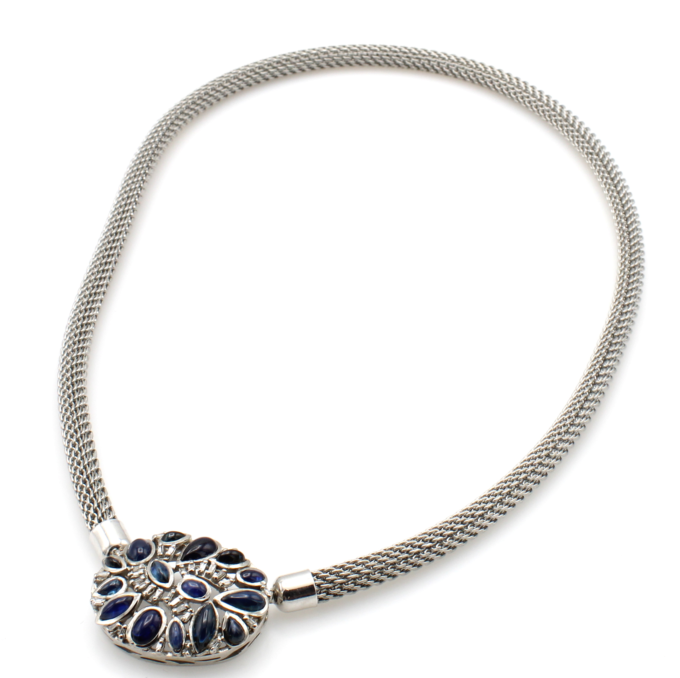 Wechselschließe mit Saphiren und Diamanten an Edelstahlschlauch, Endkappen 925er Silber, Saphircabochons in versch. Schliffformen, Diamantbaguettes zus. ca. 0.50 ct Weiß/p, L. ca. 51 cm Schätzpreis: 1600, - EUR