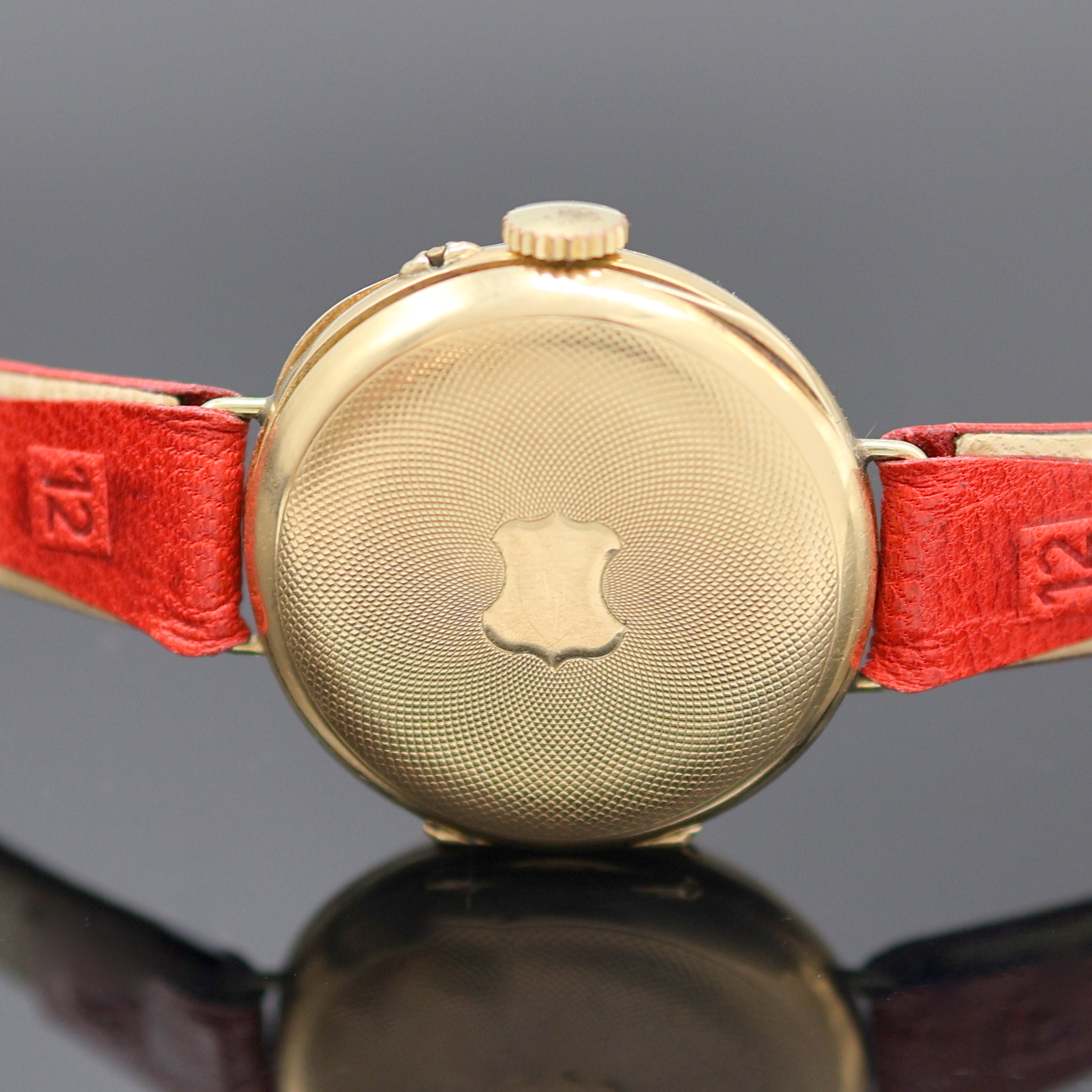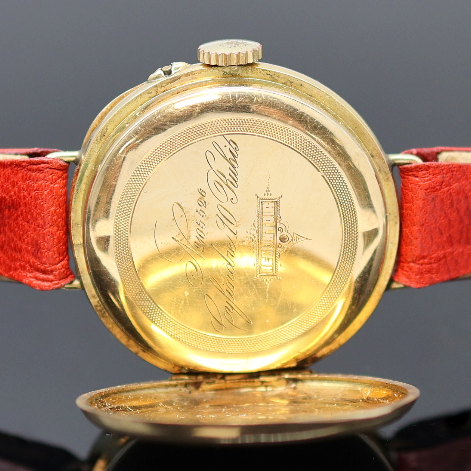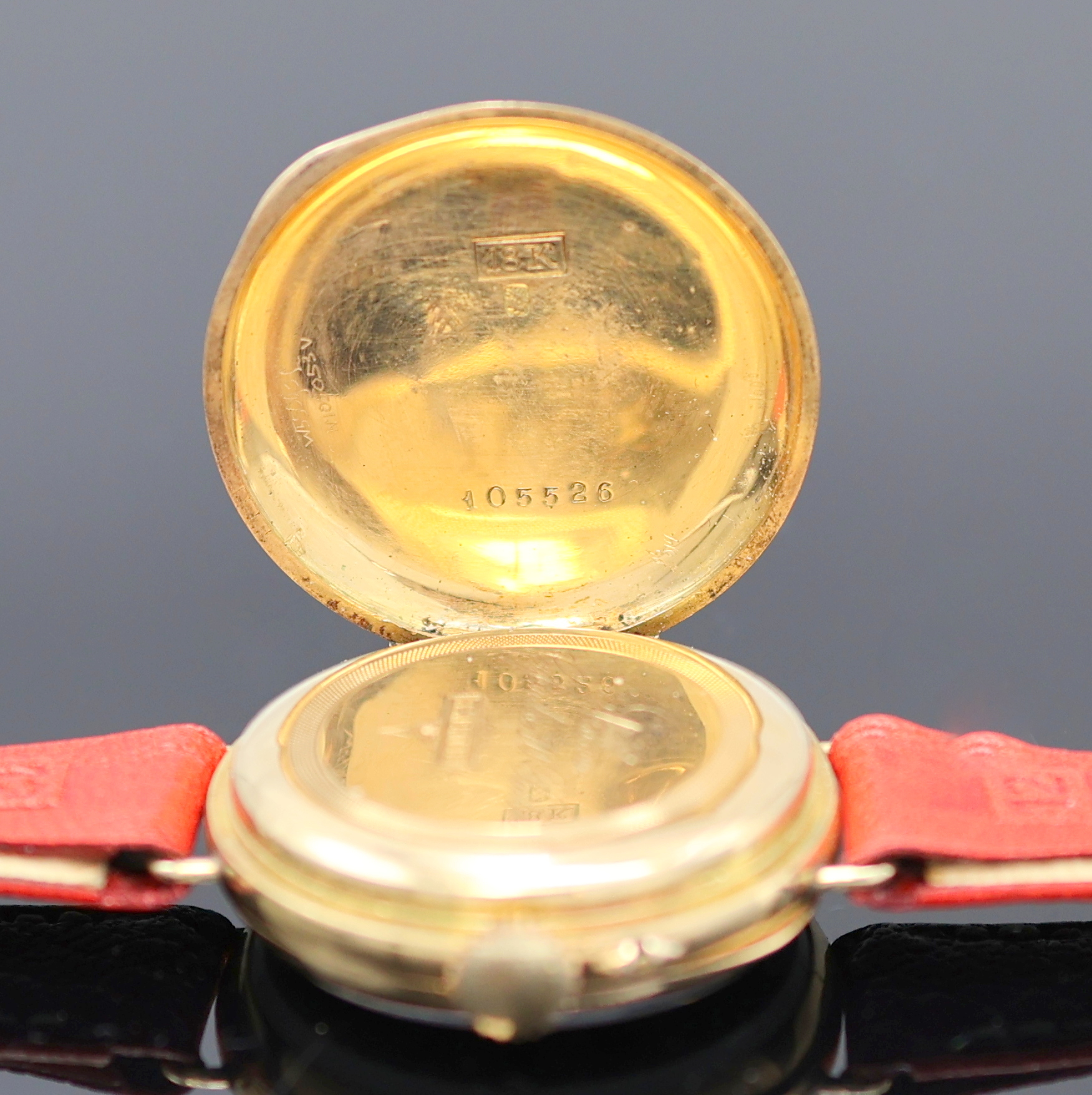 Taschenuhr in GG 750/000 umgebaut zur Armbanduhr, Schweiz um 1910, Geh. dell., guill.