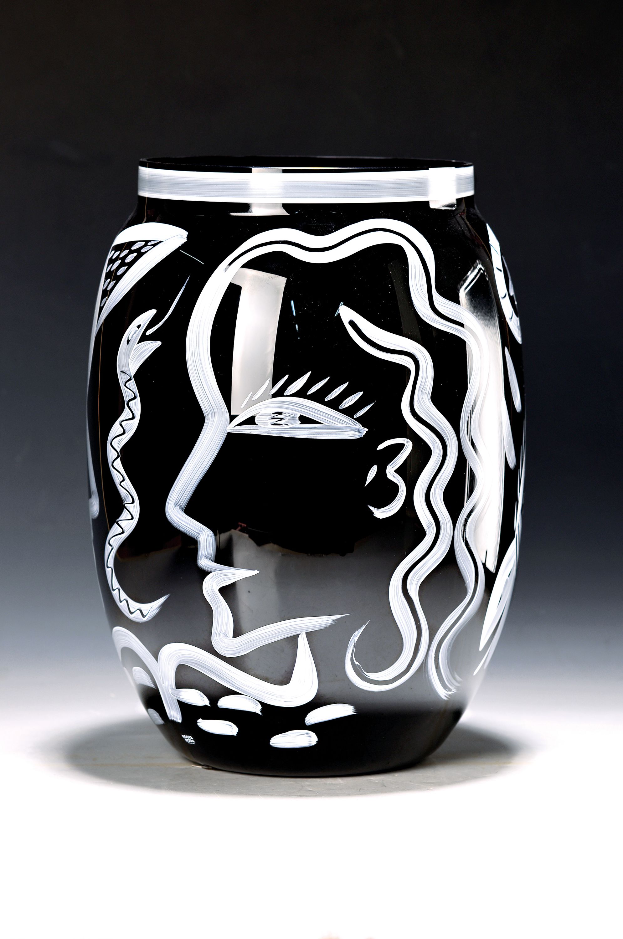 Große Künstlervase, Ilrica Hyndmann-Vallien für Kosta Boda, dunkelblaues Glas