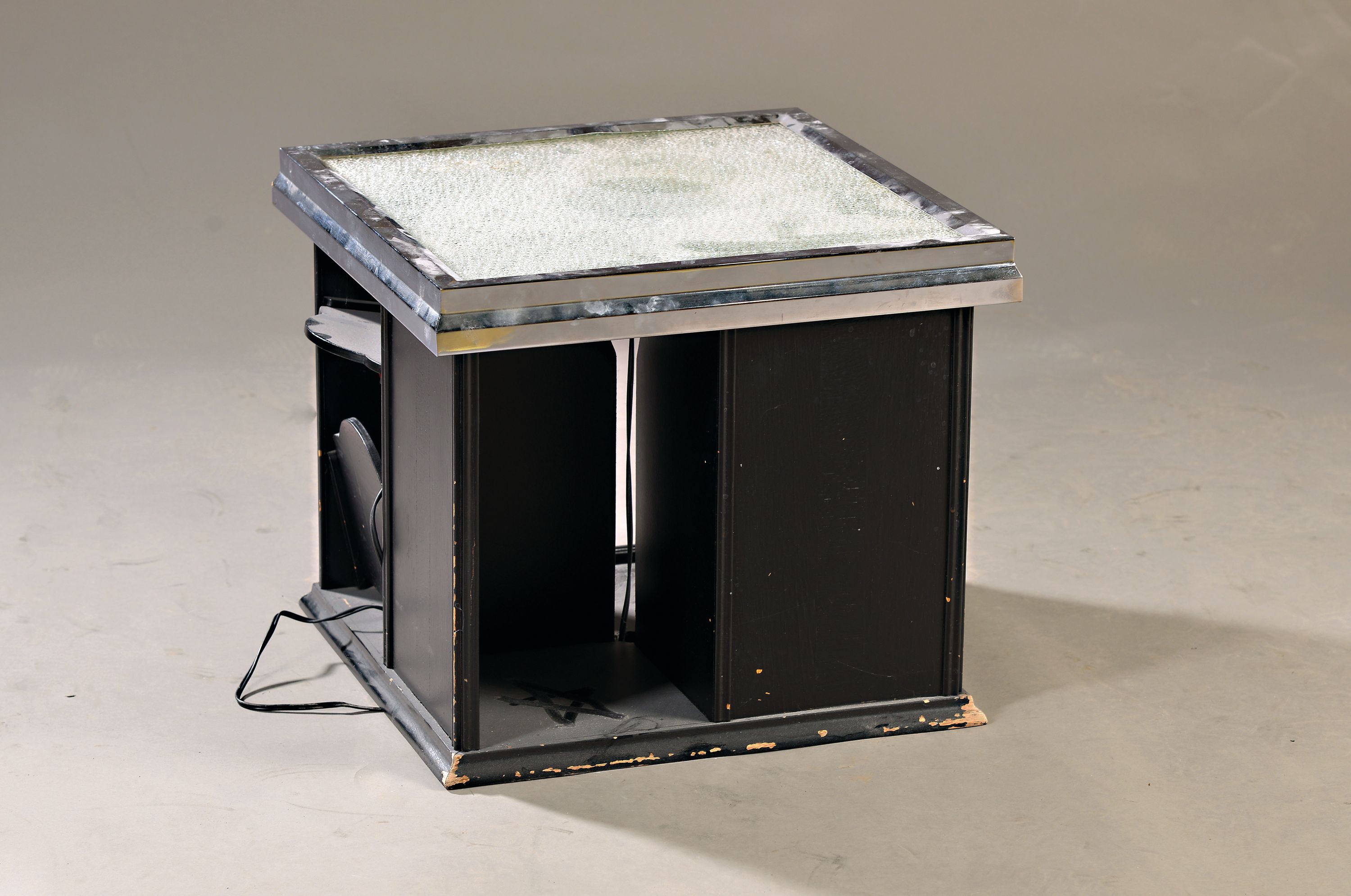 Beistelltisch mit Beleuchtung, Frankreich, um 1930-40, Korpus Holz schwarz gefaßt