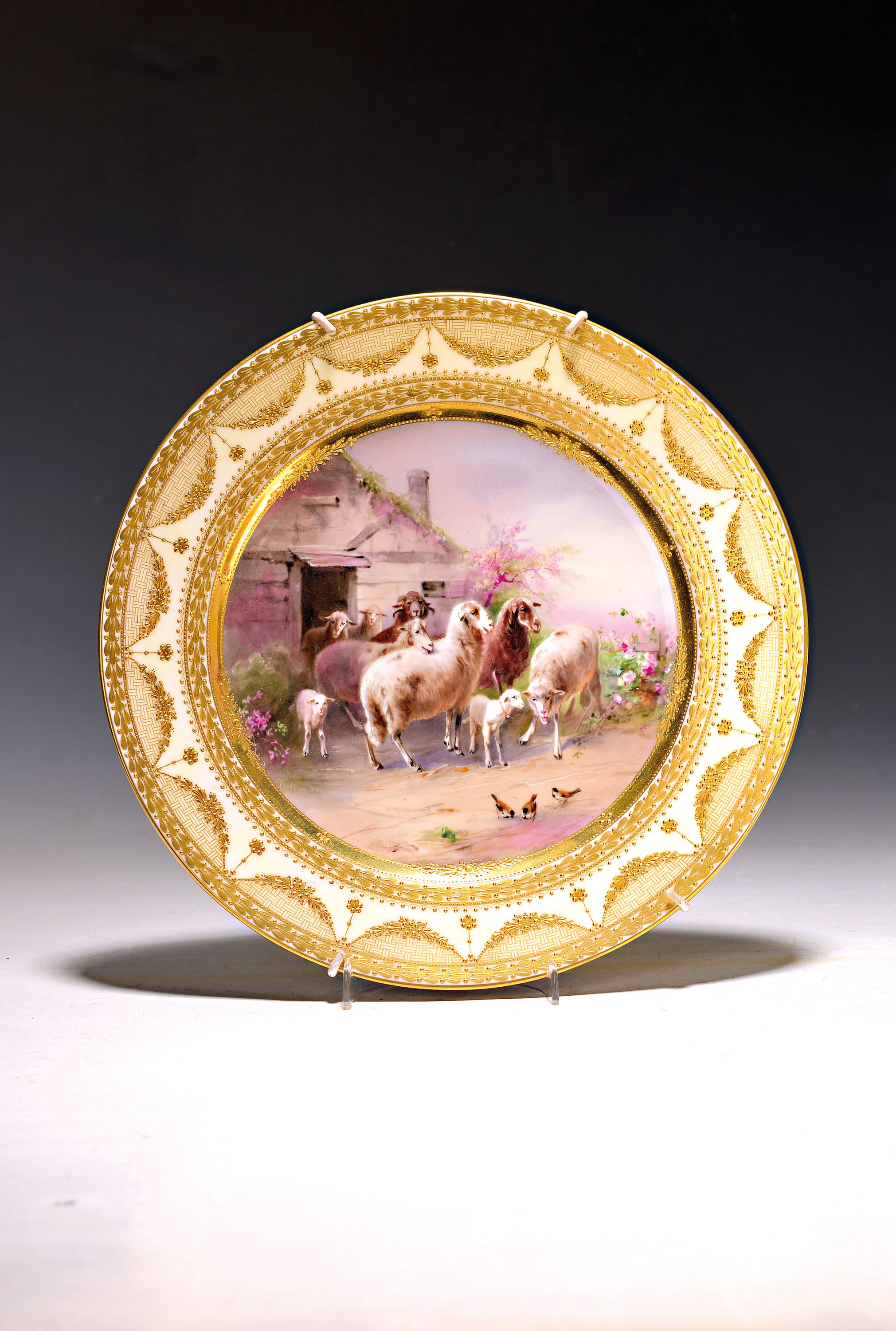 von Otto Gebler, am Morgen, handbemalt, Porzellan, D. 26.5 cm, Goldstaffage