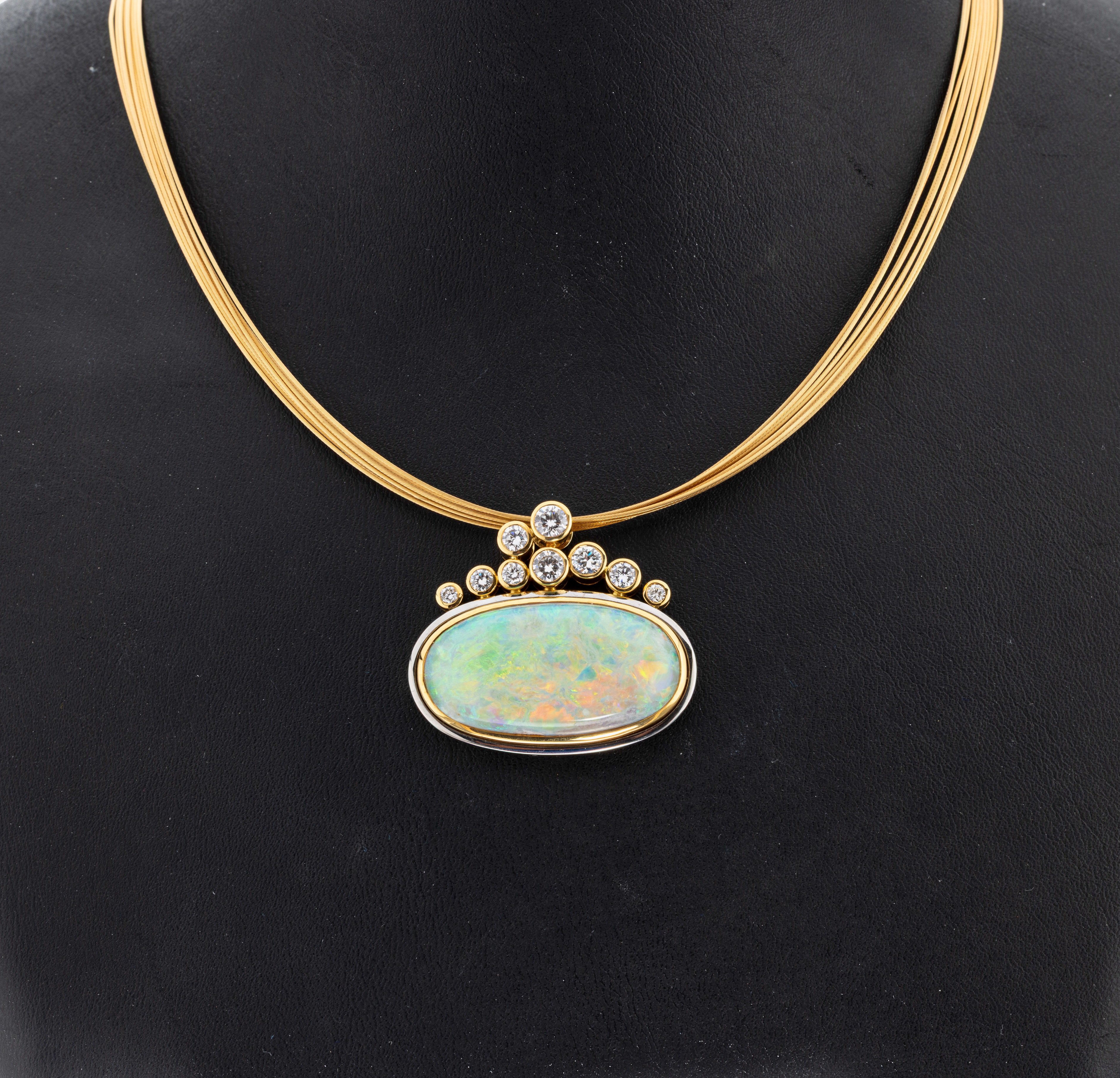 Exklusiver 18 kt Gold und Platin Opal- Brillant-Anhänger, GG 750/000 und Pt., Einzelanfertigung