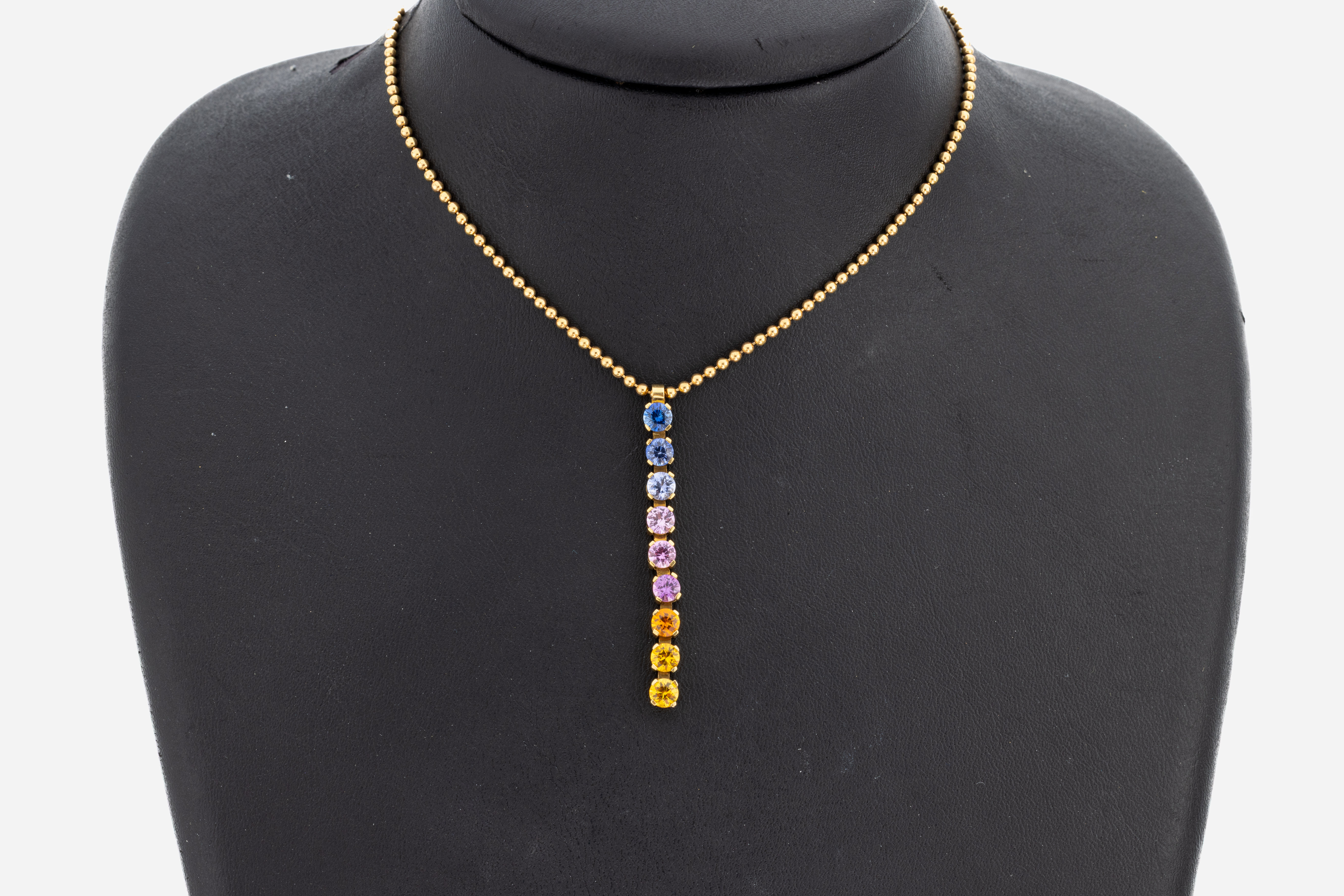 Saphire zus. ca. 2.85 ct, L. ca. 4.6 cm, an Kugelkette, GG 750/000, L. ca. 39 cm,