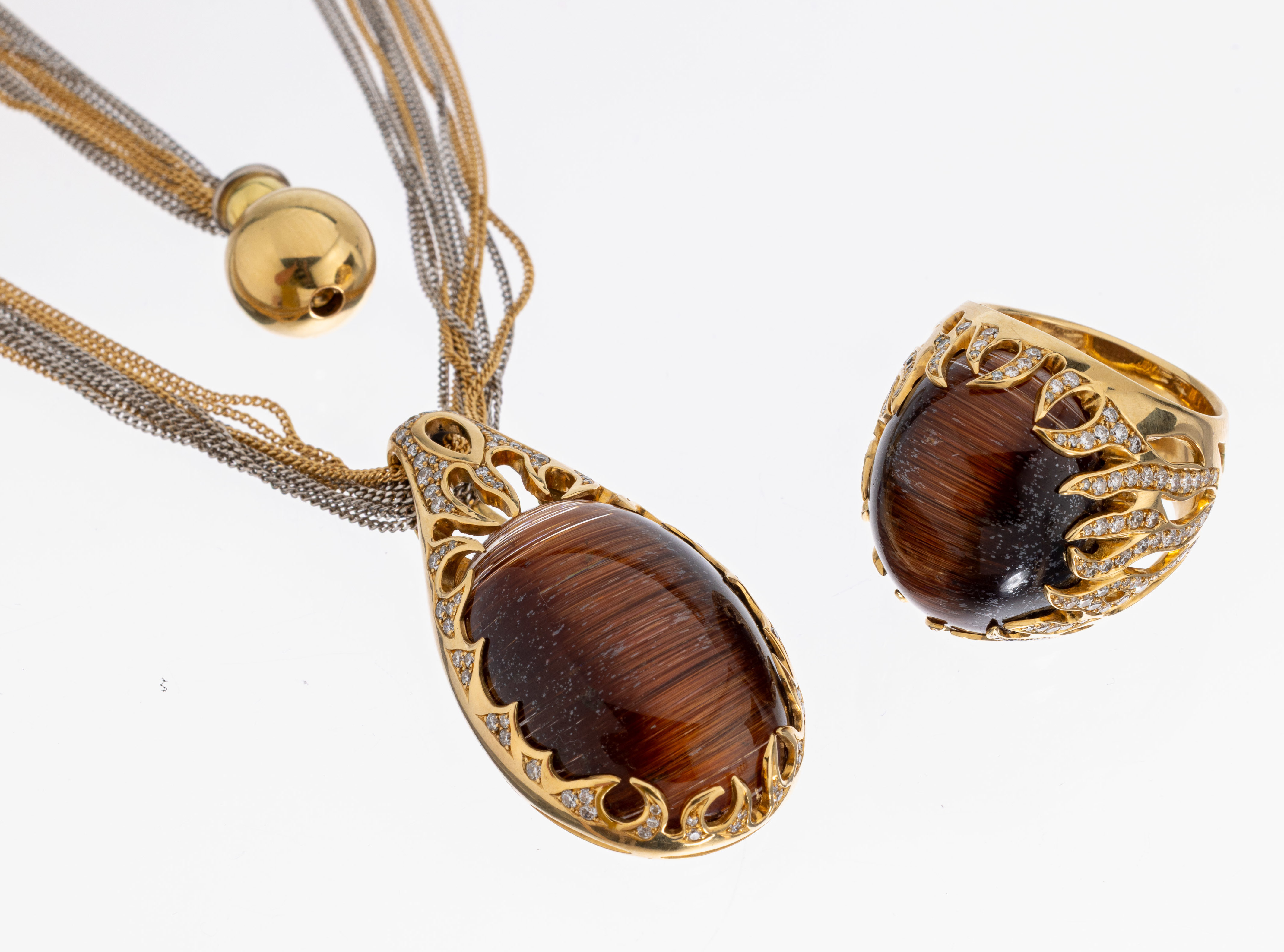 18 kt Gold Katzenaugen-Brillant-Schmuckset, GG/WG 750/000, Einzelanfertigung eines